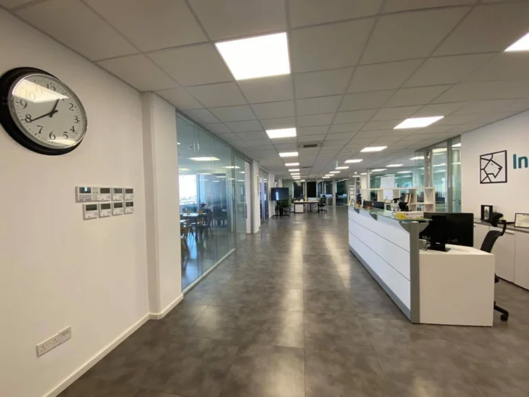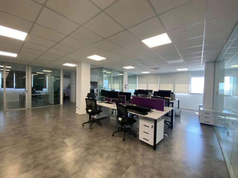 Office for rent on Griva Digeni street, Agios Nikolaos district. The office is newly renovated, bright and spacious open area, kitchen, 7 toilets, 7 separate offices and a separate bathroom with shower. There is a Parking space, located next to a developed infrastructure. The photo shows an example of how the design will look like. The office will have 5 kW solar panels on the roof.