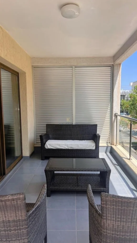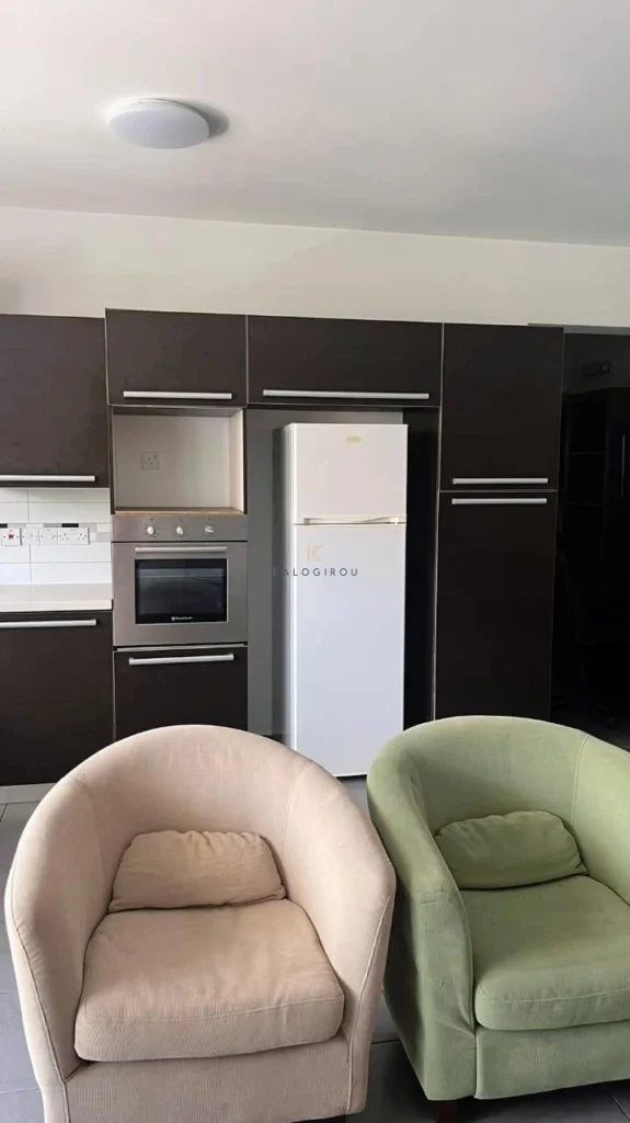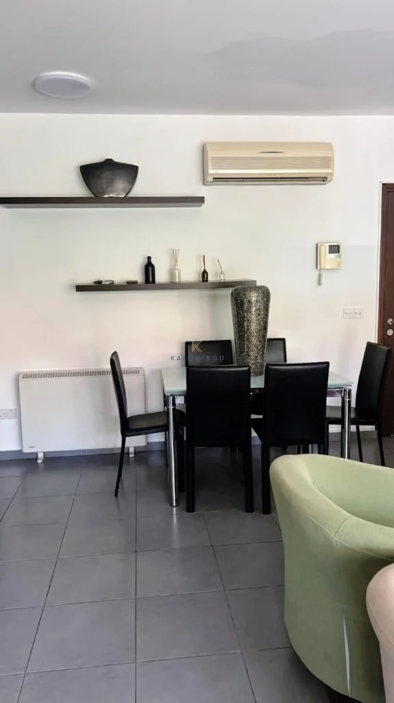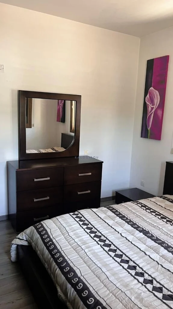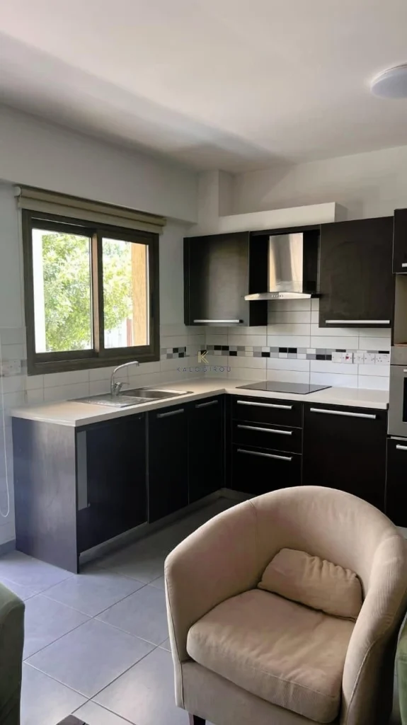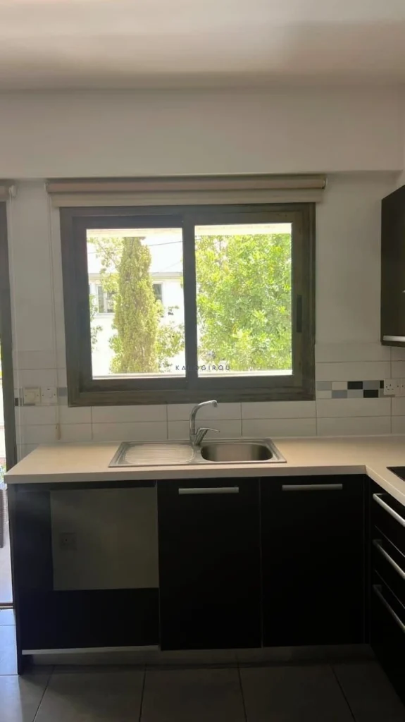 Apartment for Rent in Egkomi area. The property consists of an open plan kitchen, living and dining room, two bedrooms, a bathroom with w.c, a laundry room, covered veranda and covered parking.