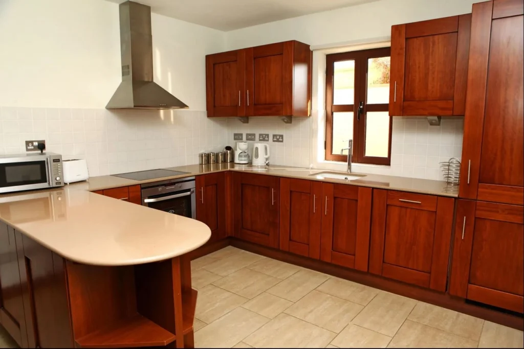 The property has an open plan layout with living, dining and kitchen areas. Patio doors lead out to a large covered veranda that is perfect for al fresco dining, and that also overlooks the swimming pool. The kitchen comes complete with all of the expected appliances and has a generous amount of worktop and cupboard space.