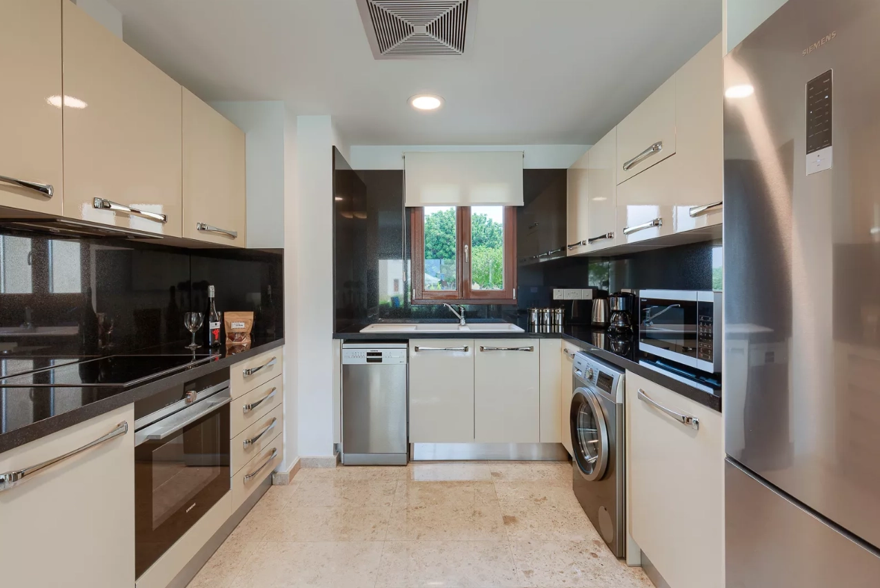 This ground floor Apartment offers spacious living areas and comes fully equipped with modern amenities, brand new fixtures and a luxury finish to match. The Apartment features one double bedroom and two twin (zip & lock) bedrooms and enjoys views of the communal pool. The option to turn the twin bedrooms into double rooms is available as the beds have the facility to be zipped together to create a double bed.