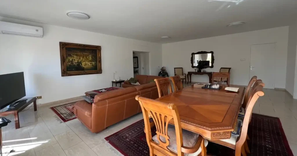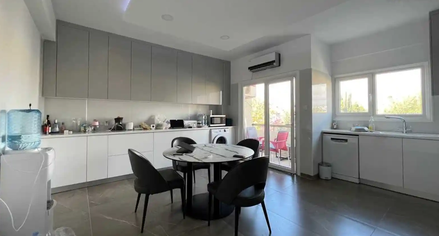 80 m from Dasoudi Beach. Huge 4 -Bedroom apartment 214 m2 , for work and live ,just renovated, new kitchen, two new bathrooms, all with floor heating, complete isolation with new windows and doors in all rooms, living space and office, fully furnished , pool + children pool and tennis court , big children play garden , entry and exit with remote control, 2 depozit + commom expenses .