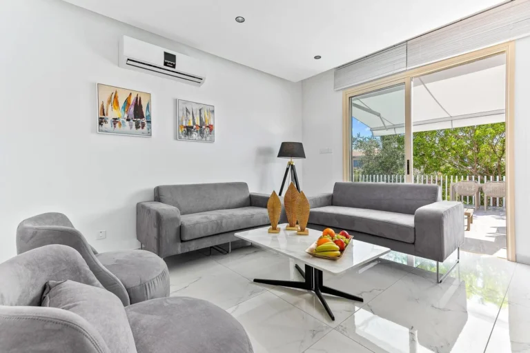Luxurious Villa for Rent in Pegia, Paphos Nestled on a hillside in Pegia, this stunning luxury villa offers unobstructed, panoramic views that will remain forever breathtaking. Located just minutes away from the famous Coral Bay, one of Paphos’ most popular holiday destinations, this villa provides a perfect blend of privacy, comfort, and elegance. The property features a large private swimming pool (5m x 10m), beautifully framed by lush, well-maintained gardens, offering a serene oasis for relaxation. The main villa boasts four spacious bedrooms, along with a fully equipped gym and a sauna for your personal wellness retreat. An additional one-bedroom apartment, attached to the main villa, comes with its own en-suite bathroom, a cozy kitchen, and open-plan living and dining areas. This apartment also has direct access to a large patio and barbecue area, perfect for entertaining. For year-round comfort, the entire property is fully air-conditioned and equipped with gas central heating. Main Villa Area: 350m2 Apartment: 75m2 Covered Areas: 83m2 Plot Size: 1,450m2 This villa is the perfect choice for those seeking a high-end rental experience in one of Cyprus’ most desirable locations.