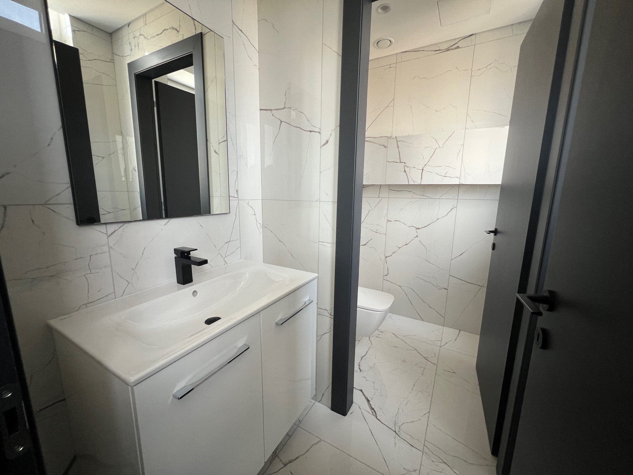 For rent a whole-floor office with sea and city views located in the Mesa Geitonia area, near Makariou Avenue, and close to amenities. The covered area is 485 sq. m + 107 sq. m roof garden with panoramic views. It consists of a reception area, open-plan area, 2 separate offices, a separate kitchen with a dining area, server room, storage room and 3 WC. The office is available unfurnished, with kitchen appliances, a central VRV air conditioning system, raised floor, data and telephone provisions throughout, high-tech suspended ceilings and suspended LED lighting and electronically controlled entrance doors with an intercom system. There are 7 uncovered gated double-size parking spaces on the ground floor which could accommodate 14 cars.