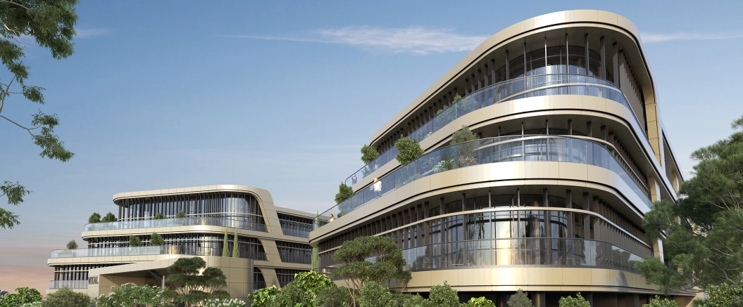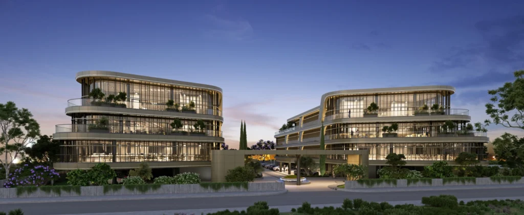 The project is an innovative office park situated in Limassol, Potamos Germasogeias. It features a cutting-edge design comprising two-tiered office buildings supported by pilotis, with three floors symmetrically aligned along a central axial avenue. The office spaces within these buildings are designed with deep plans, minimizing the need for columns and incorporating post-tensioned slabs. This design approach ensures maximum flexibility, allowing the spaces to be easily adapted for either single or multi-occupancy use.