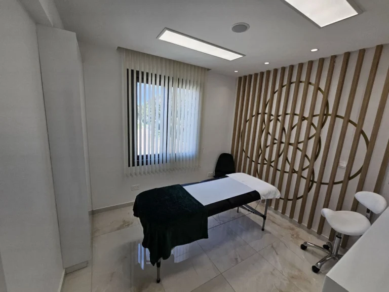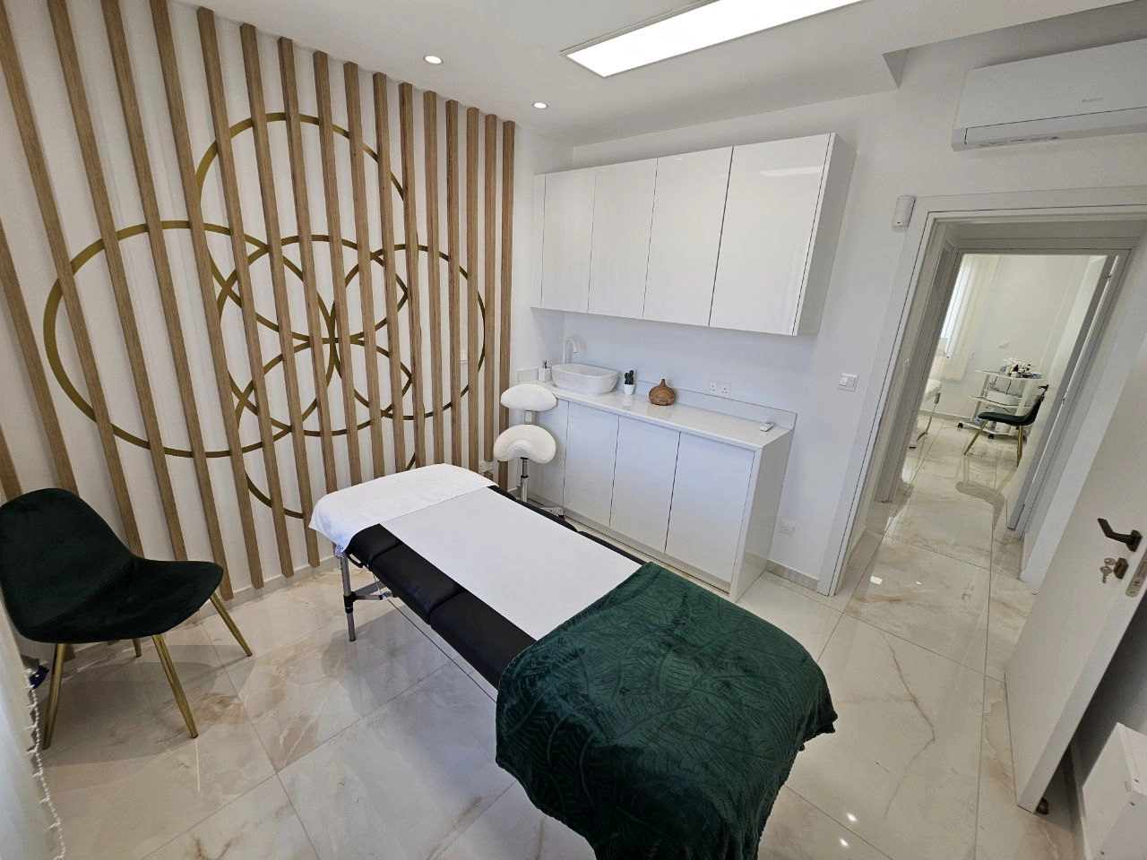 Clinic premises for rent in Kato Paphos This fully equipped clinic offers ideal conditions for specialists in the field of medicine and aesthetics. The room includes two treatment rooms equipped with sinks for washing.1. Room 1: The treatment room is equipped with an electric manipulation chair, which makes it an ideal place for a doctor or cosmetologist when performing laser procedures, injections or other medical procedures. The room is ideal for dermatological, therapeutic, aesthetic or cosmetic procedures that require precision and patient comfort.2. Room 2: Spa and cosmetology room for beauty treatments Currently, this room has a massage bed, which makes it ideal for massage treatments and relaxation. It has a soothing atmosphere for spa treatments, but it can easily be converted into a nail technician’s office or a beauty salon for facial care, waxing or other non-invasive procedures.3. Reception, recreation area, bathroom.