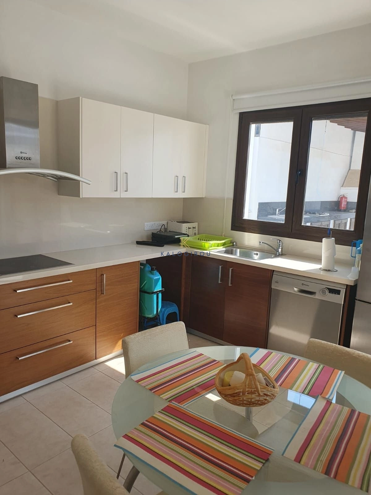 Double Storey House for rent in Larnaca, Agios Theodoros village. On the ground floor consists of a spacious open plan living/dining area with fireplace, separate kitchen and a guest toilet. A spiral staircase leads you to the first floor which consists three bedrooms, the master bedroom has en-suite shower with wc and a main bathroom with wc. The property has a covered internal area of 270 sqm.