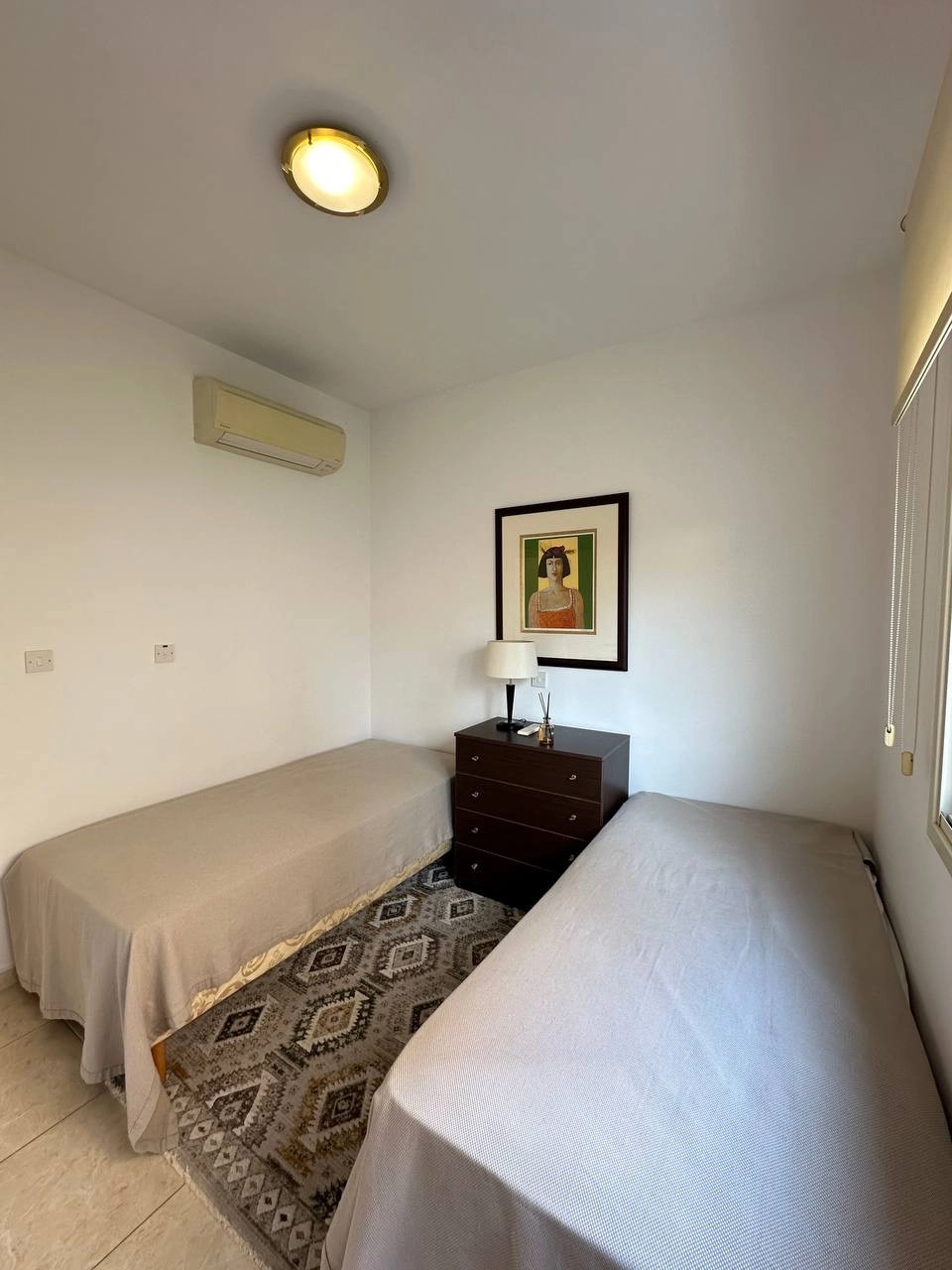 A cozy apartment in Cyprus is recommended for rent for long period. It is located on the ground floor of a complex in Limassol in close proximity to the sea. The complex has a swimming pool and tennis court. Within walking distance there are well-groomed beaches, cafes, taverns, salons, car rental, public transport stops.