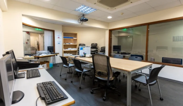 Standing tall with pride, the structure encompasses a total of seven floors, including two underground levels dedicated to parking and storage facilities. Upon entering the premises, visitors are greeted by the grandeur of the central entrance, flanked by two high-speed elevators and a spacious staircase leading to the upper floors.