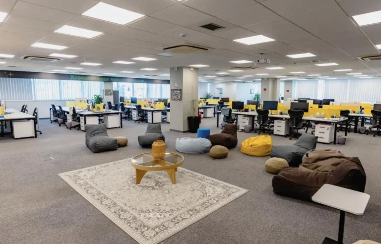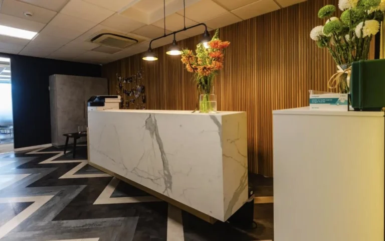 The fifth floor, characterized by its panoramic views and contemporary design, features a reception area that exudes sophistication