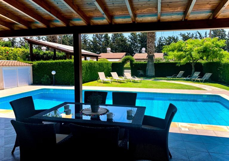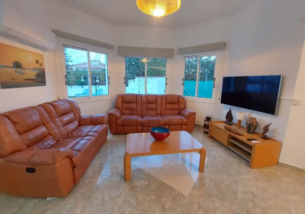 5 betroom villa in Peyia, with swimming pool, new electric devices, new aircontidions, big verandas, 2 kitchens, 3 bathrooms, room full of wardrobes, big yard and barbeque. It has a photovoltaic system witch cover all the needs for electricity.
