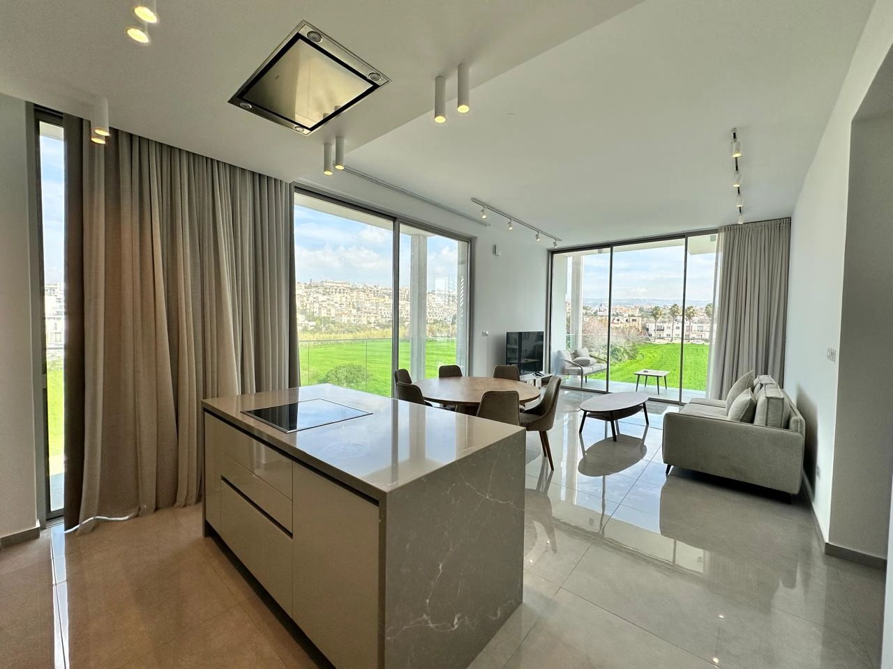 Brand New Two-Bedroom Apartment in Tombs of the Kings Area, Paphos This brand new two-bedroom apartment is located in the sought-after Tombs of the Kings area, one of Paphos’ most historic and desirable locations. Situated on the third floor of a modern four-storey building, this apartment offers a perfect combination of comfort, modern amenities, and stunning views. The Tombs of the Kings is a UNESCO World Heritage Site renowned for its historical significance, ancient tombs carved into rock, and proximity to the Mediterranean coastline. Located in Paphos, this vibrant area combines a rich cultural heritage with modern conveniences, offering a variety of restaurants, shops, and leisure activities just a short stroll away. The area is highly sought-after for its unique mix of tranquility and accessibility. Upon entering the property, you are greeted by a spacious open-plan living, dining, and kitchen area that flows effortlessly into a covered veranda. From here, you can enjoy beautiful mountain views as well as side sea views, creating a peaceful and relaxing atmosphere. The apartment features two generously sized bedrooms, each designed with comfort in mind. The master bedroom comes with en-suite facilities, providing added privacy and convenience. There is a second bathroom with a shower, serving the second bedroom and guests. The apartment comes fully furnished and equipped, including kitchen essentials such as a washing machine and dishwasher, ensuring a move-in-ready experience. Additionally, the apartment is fully air-conditioned and features underfloor heating, making it ideal for year-round living. For added convenience, the property includes a private covered parking space and a dedicated storage room, offering ample space for belongings. The complex offers excellent communal amenities, including a communal swimming pool, shared shower and toilet facilities, and a welcoming lobby area for residents and guests. The rental price includes communal fees, insurance, and internet connection, ensuring a worry-free living experience. This apartment is the perfect choice for those seeking a modern, stylish home in a prime location, close to historical sites, beautiful beaches, and local amenities.