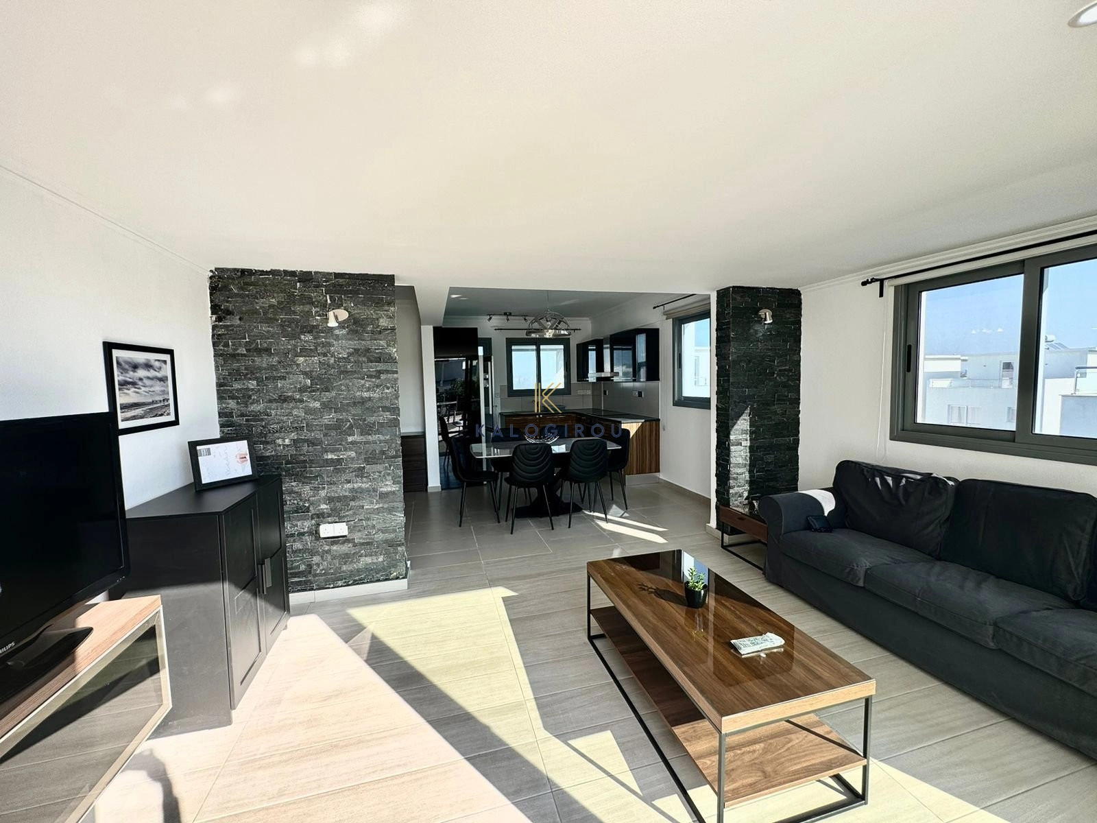 Apartment for rent in Livadia area, Larnaca. The property is an Apartment on the top floor , with internal covered area of approx. 100 sqm. It consists of an open plan kitchen, living and dining area, a lovely 40 sqm uncovered balcony, a main bathroom with shower, two bedrooms, one of them en suite with shower and wc. In addition, is fully furnished, kitchen appliances and A/C units.