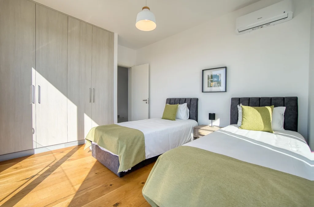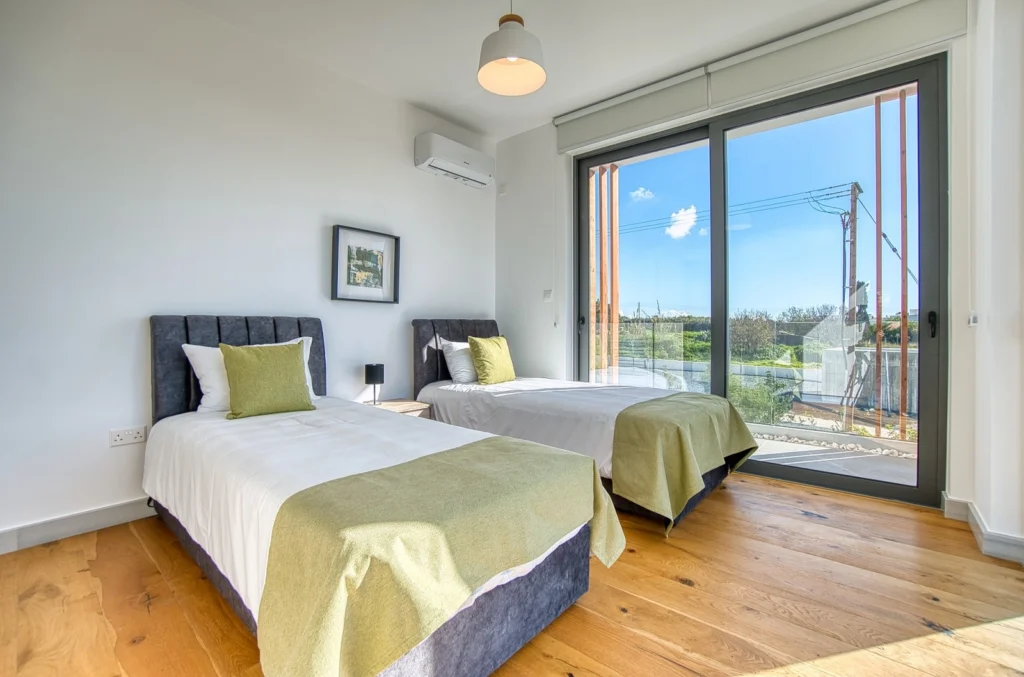This stunning, modern 4-bedroom villa is located in the picturesque Emba Village, offering a serene and peaceful lifestyle while still being close to the amenities of Paphos. Emba is a charming village known for its traditional Cypriot atmosphere, with beautiful countryside views and a welcoming community. it is just a short drive away from the vibrant town center, local schools, shops, and restaurants, making it an ideal location for both relaxation and convenience. Upon entering the 177 sqm property, you are greeted by an open-plan living, dining, and kitchen area, creating a spacious and bright environment. This area seamlessly flows out to a private garden and a refreshing private swimming pool, perfect for outdoor entertaining or relaxation. On the ground floor, you’ll also find a well-appointed bedroom and a guest toilet with a shower. The first floor features three beautifully designed bedrooms. The master bedroom includes an en-suite shower, while the two other bedrooms share a modern bathroom. From this floor, you can enjoy lovely sea views, adding a touch of tranquility to your daily living. A few more stairs lead you to the rooftop garden, where you’ll be treated to panoramic views of the city and the sea – a perfect spot to unwind and enjoy the beauty of the surroundings. The villa comes fully furnished, with a fully equipped kitchen, making it move-in ready and perfect for those looking for a contemporary, hassle-free living experience. The property is set on a 301 sqm plot, offering both privacy and space in a prime location. Term of Payments: 2 months deposit & 1 month rent in advanced!