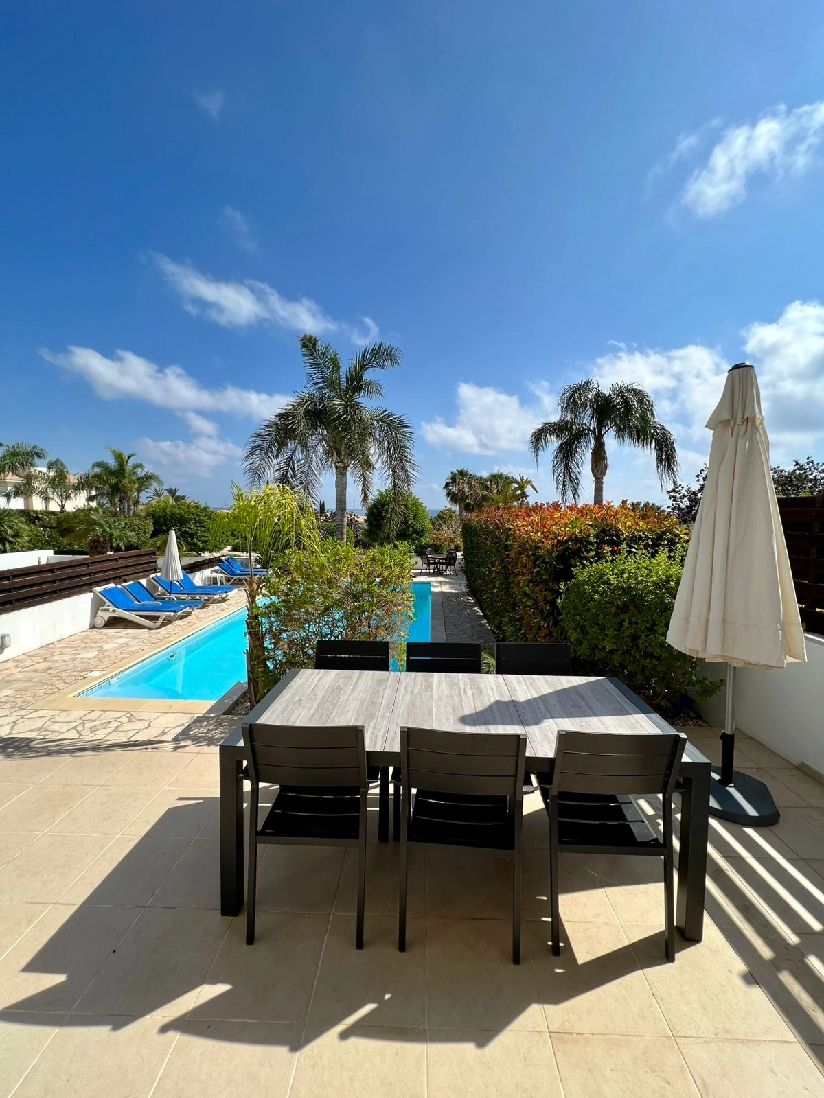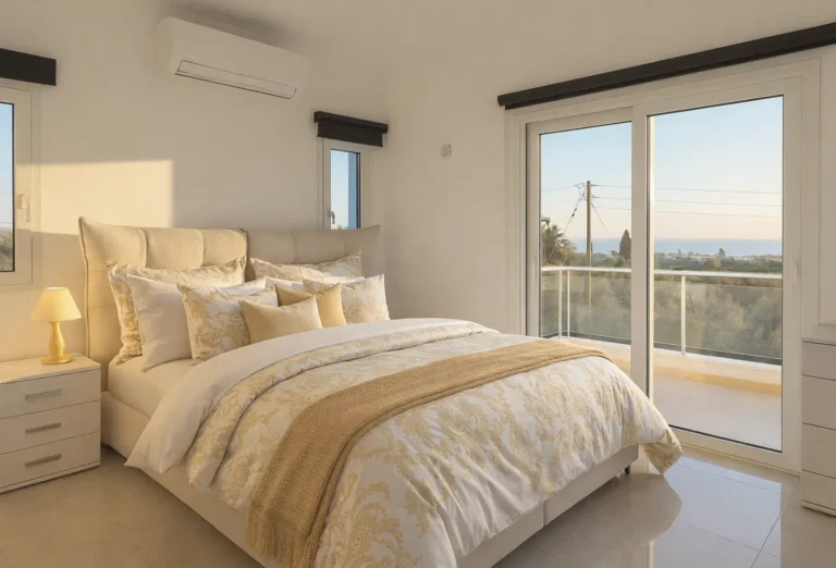 This delightful 3-bedroom villa is located in the sought-after Coral Bay area of Peyia, an area famous for its stunning beaches, clear waters, and convenient proximity to amenities. Coral Bay is perfect for those seeking a relaxed Mediterranean lifestyle, with restaurants, shops, and services just a short stroll away. Upon entering the villa, you are greeted by an open-plan living, dining, and kitchen area, creating a bright and airy space ideal for comfortable living and entertaining. This area provides direct access to a private garden and swimming pool, perfect for outdoor relaxation. A guest toilet completes the ground floor for added convenience. On the first floor, there are three well-sized bedrooms. The master bedroom features an en-suite shower, while the other two bedrooms share a family bathroom with a bathtub. The layout is thoughtfully designed to provide privacy and comfort for all residents. The villa is fully furnished and equipped with modern conveniences, including a photovoltaic system for “free” electricity, heating, and energy-efficient LED lighting. Additional features include private covered parking and video surveillance, ensuring practicality and security. Located just 200 meters from the beach, this property offers easy access to the coastline, and the renowned Coral Bay Beach is only a 10-minute walk away. The large Philippos supermarket and other amenities, such as restaurants and pharmacies, are also conveniently close. Key Features: Open-Plan Living, Dining, and Kitchen Area 3 Bedrooms / 2 bathrooms (Master with En-Suite Shower) Shared Bathroom with Bathtub for Two Bedrooms Guest Toilet on the Ground Floor Private Garden and Swimming Pool Covered Parking Photovoltaic System for Electricity Heating and LED Lighting Video Surveillance Sea Views 200 Meters from the Beach, 10 Minutes to Coral Bay Beach Close to Restaurants, Shops, and Services The price includes the maintenance of pool and garden! This villa provides a cozy and practical living space in one of Cyprus’s most desirable areas. Whether for permanent residence or as a holiday home, it offers a fantastic opportunity to enjoy the best of the Mediterranean lifestyle. Contact us today to arrange a viewing!