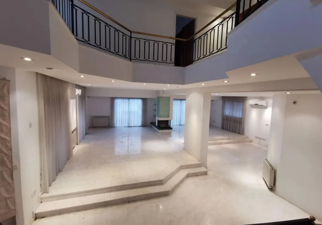 Luxury three-storey villa with 4 bedrooms and an office for rent in the prestigious area of Strovolos – Dasoupolis, Nicosia. On the ground floor there are 2 spacious open-plan living rooms with a fireplace, a modern open-plan kitchen-living room, a guest bathroom, a service apartment with 1 bedroom, bathroom and an open-plan kitchen-living room. On the upper floor there are 3 spacious bedrooms (1 with a bathroom), 1 study, 2 elegant bathrooms, a laundry room, 2 large verandas for relaxation. In the basement there is an indoor heated swimming pool, which can be used all year round, a bar, a sauna, a bathroom (toilet/shower). The well-maintained garden is ideal for outdoor recreation, the house was designed by an architect specializing in luxury hotels, there is a covered garage for 2 cars. It is located next to a child-friendly park, as well as next to the Falcon School.