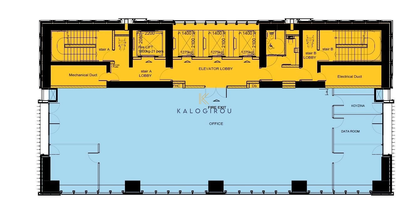 The tenth floor office for rent is inside of a 22-storey commercial building and it has 285sq.m. of internal covered areas and 177sq.m of common areas. The property also belongs two lobbies of internal stairs and a large elevator lobby. It also consists of a two guest toilets, from which the one is handicap accessible, a kitchen and a data room.