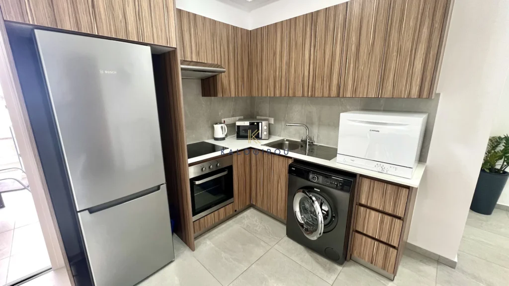 Modern, Top Floor Two Bedrooms Apartment for rent in New Marina, Larnaca. There is easy access to the highway network and Larnaca International Airport is just 7km. Great location, as all amenities, such as Greek and English schools, major supermarkets, entertainment and sporting facilities, are within close proximity.