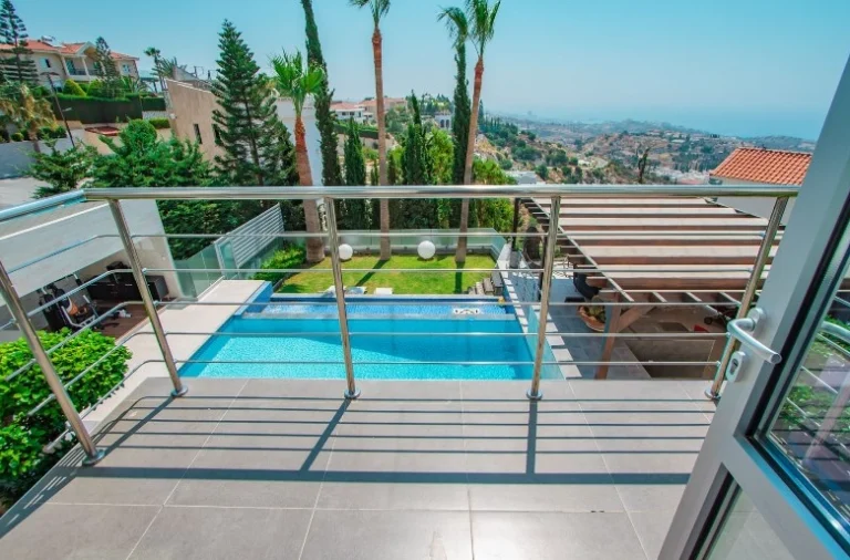 Luxury villa overlooking the sea, located in the prestigious area of Agios Tychonas, a short walk from the beaches of the Amathus Beach and Four Seasons. The covered area 400 sq. m + 50 sq. m uncovered verandas, the plot is 741 sq. m. The villa consists of 5 fully furnished, modern and spacious bedrooms, as well as an equipped kitchen and a cozy living room with a fireplace. Garage for 2 cars, a sauna, and a servant’s room is located on the ground floor. The house reflects a luxurious design and a magnificent architectural style. It has a private heated swimming pool, a covered patio, and a barbecue area. The house is equipped with a security system and video surveillance, surround sound system, solar panels for water heating, air conditioning, autonomous heating, borehole, and water purification systems to drinking water. Title deed is available.
