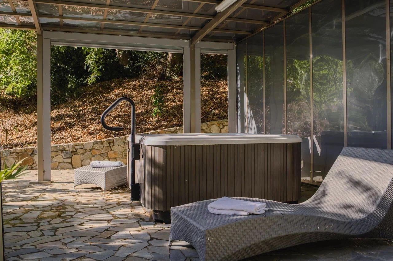 For rent a 3-bedroom house (+1 room for staff) surrounded by breathtaking nature. Furnished. Central diesel heating. Air conditioning in all rooms. With a sauna and a fireplace. All 3 bedrooms are en-suite. A separate room for the staff. The house is located in a picturesque area of the village of Moniatis.