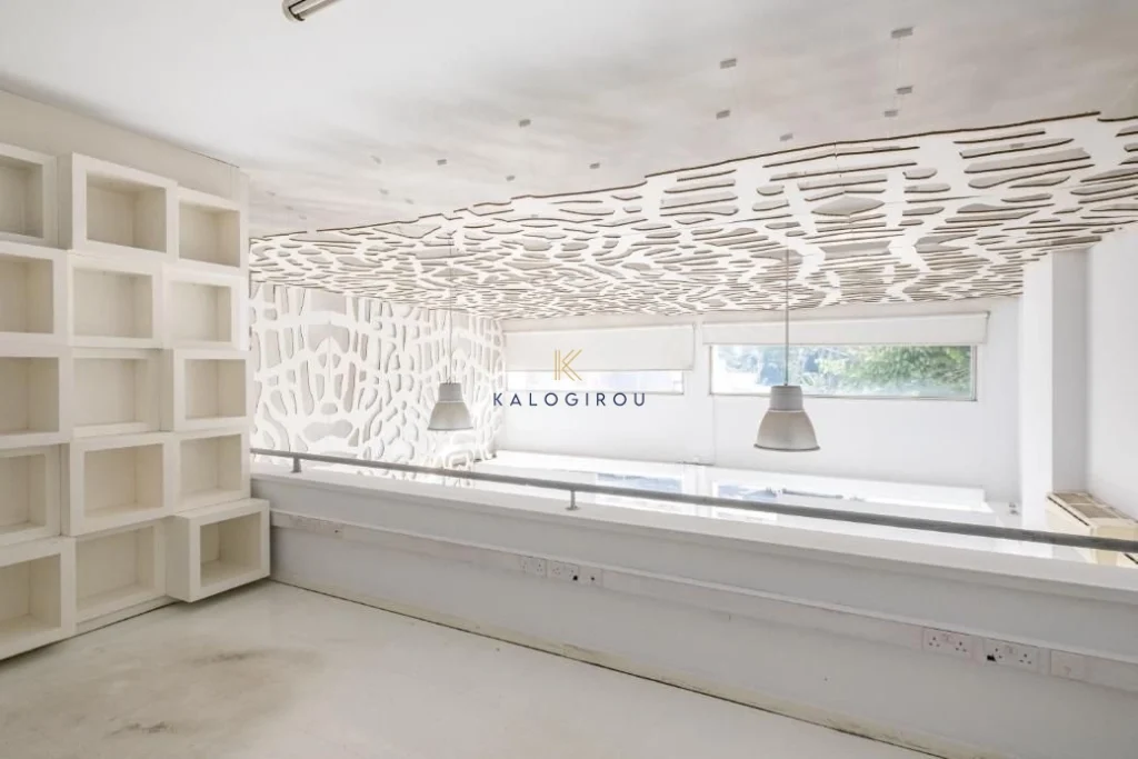 Shop for rent in the prime area of Agioi Omologites, in Nicosia. The shop is located on the ground floor and occupies the entire floor. It consists of the reception area, open plan area, three rooms, one kitchen, conference room and mezzanine floor. The property has internal covered area of 296sqm. The building benefits of an exclusive right for 3 parking spaces. The shop is part of a mixed – use building that consists of 15 shops and offices as well.