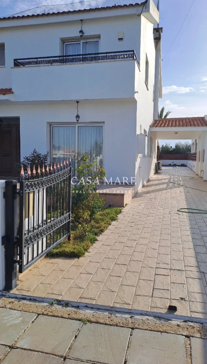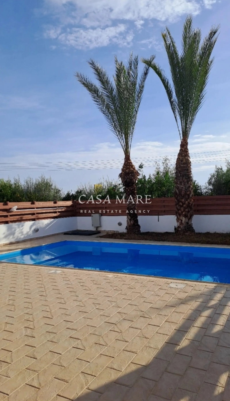 A 3-bedroom house with a pool for rent in Pano Deftera, located close to Grammar School, Pascal School, International School Nicosia, and Mall of Nicosia. The house has been recently renovated and is immediately available for rent.
