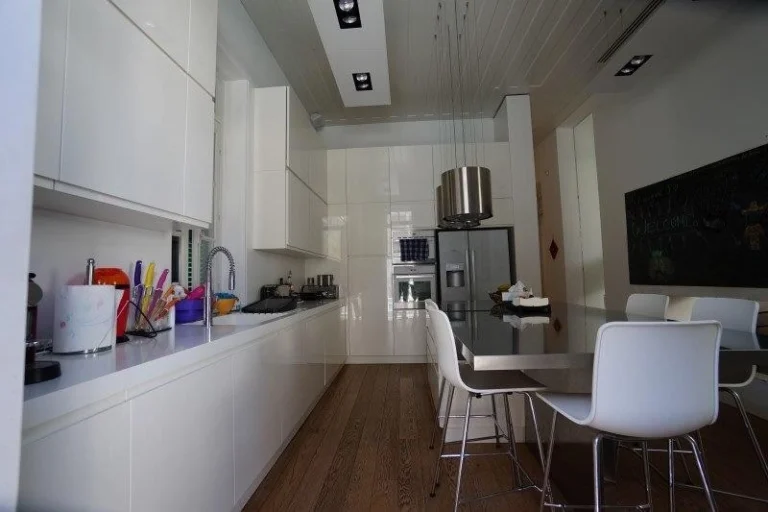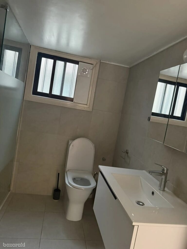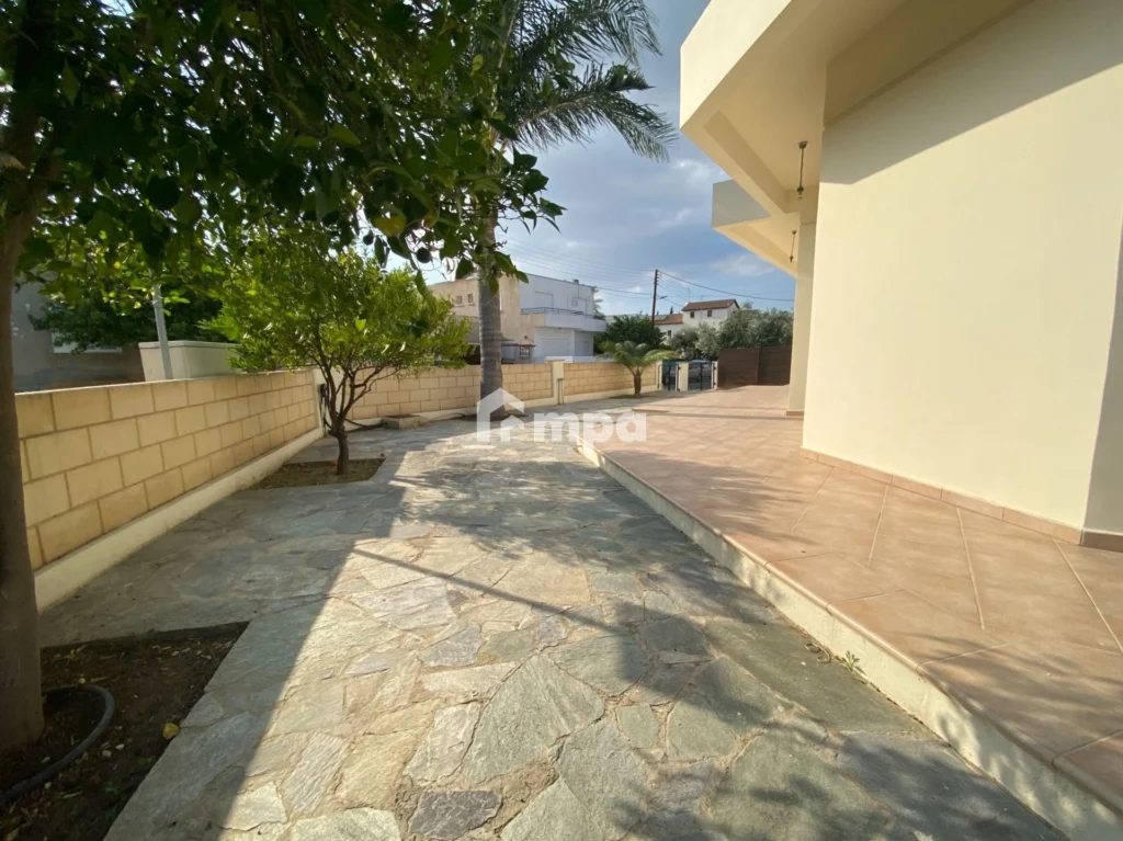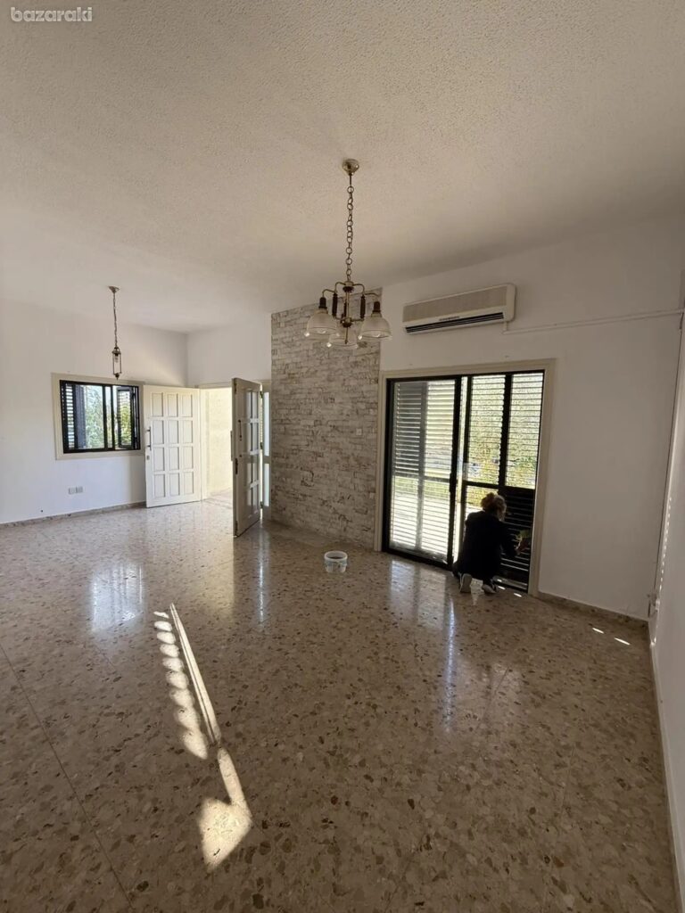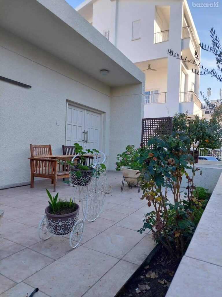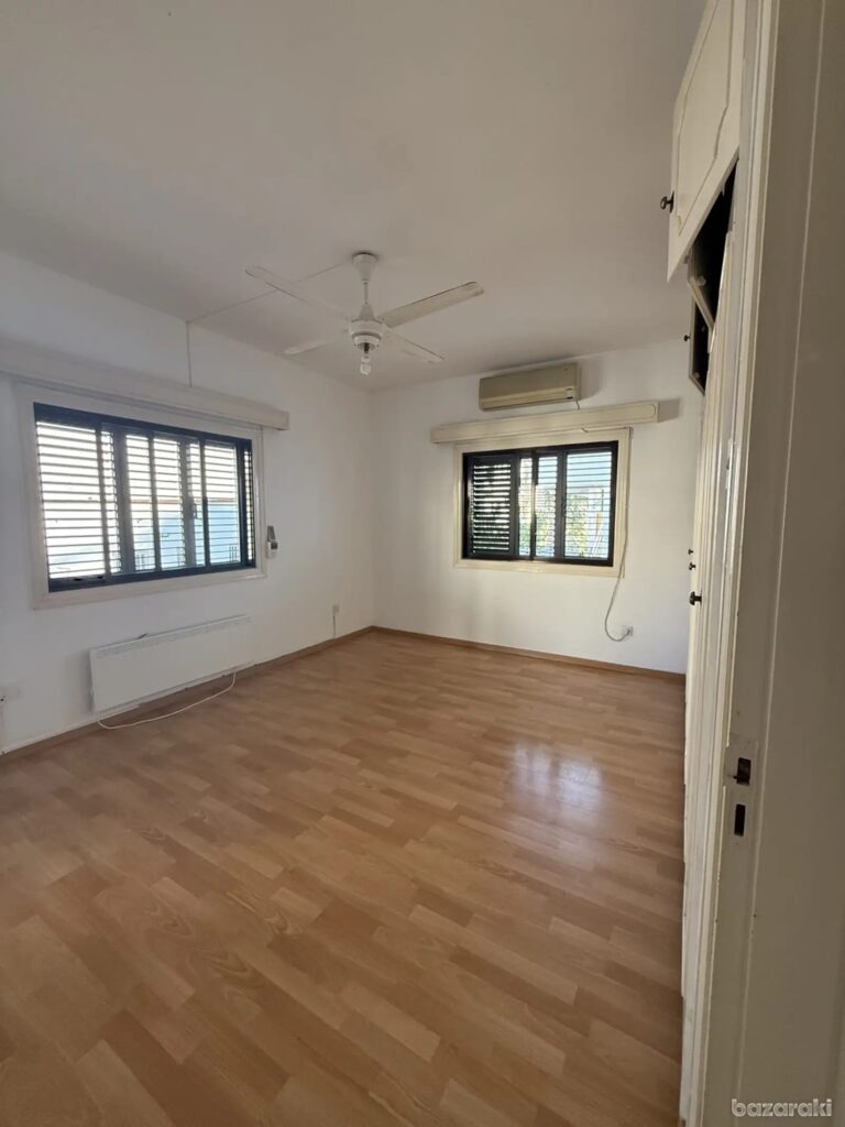 Three bedroom house plus office in Egkomi – Parissinos area for rent. This spacious house of around 180 sqm has been recently renovated and is located in one of the best areas of Nicosia. It is one level house with a big garden and big verandas around. There are two living rooms, an office, a big kitchen, three spacious bedrooms, one with ensuite bathroom, a family bathroom and a guest toilet. There is central heating, a/c units, washing machine and refrigerator. There is also covered parking and solar water heater.