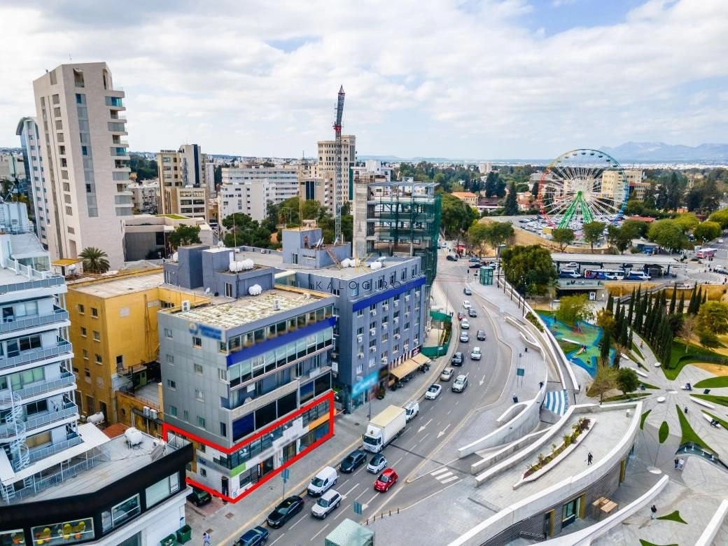 The shop for rent is located in the very prime area of Trypiotis, in Nicosia’s Center, with a 19-meter facade. It consists of two combined units and is situated on the first floor of a multi-story building. The first unit has a total interior space of 513 sqm, with a 710 sqm basement and a 408 sqm mezzanine. The second unit offers 25 sqm of interior space.