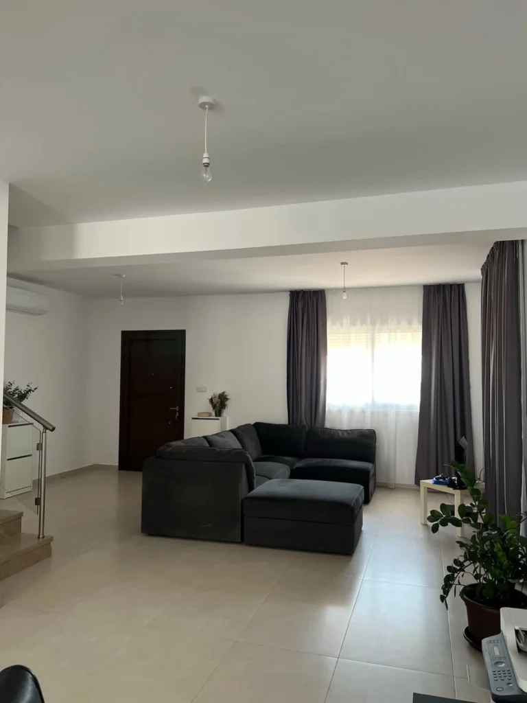 A spacious and bright four-bedroom house is available for rent in Ypsonas, Limassol. Located on a main road, it offers easy access to transportation, shops, and other amenities. The house is unfurnished and it comes with essential electrical appliances.