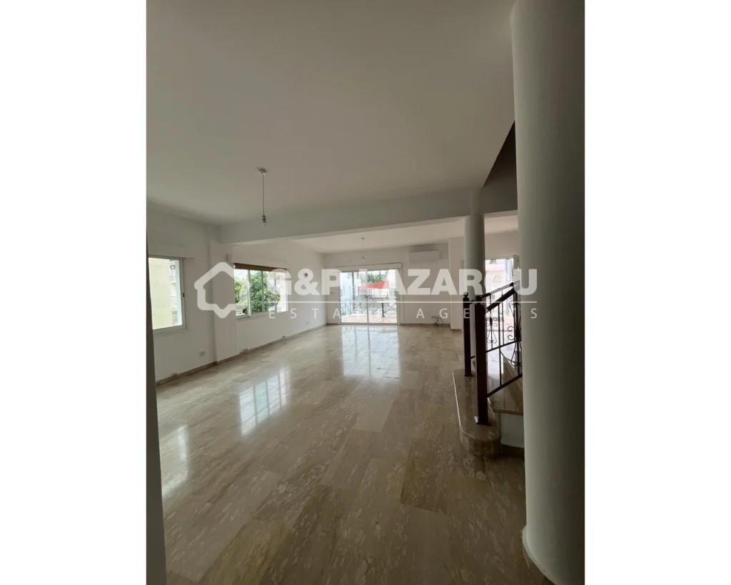 A spacious and bright four-bedroom house is available with an one-bedroom ground floor apartment for rent in Ypsonas, Limassol. Located on a main road, it offers easy access to transportation, shops, and other amenities. The properties are unfurnished and they come with essential electrical appliances.