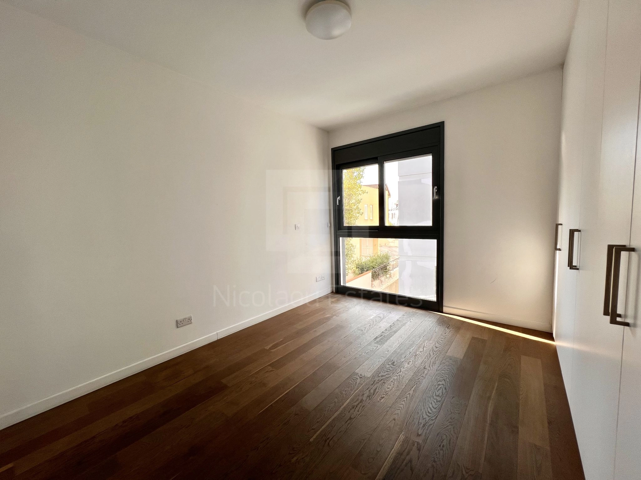 Luxury two bedroom apartment for rent In Aglantzia. This modern apartment is situated in a privileged area in Aglantzia giving you access to many amenities public services and fast access to the highway. This apartment is offered unfurnished. It is situated on the second floor of a modern 3 story building. It comprises a living dining area an open plan kitchen with electric appliances a bathroom serving the two bedrooms a guest toilet and a large 20m2 covered veranda. With high quality construction it consists of two bedrooms one main bathroom and a guest toilet. A very spacious living room dining room and a high quality Italian kitchen. Italian kitchen Electric shutters in the bedrooms Parquet flooring Underfloor heating Intercom entry system Covered parking Storeroom 925 per month common expenses At least a two year contract