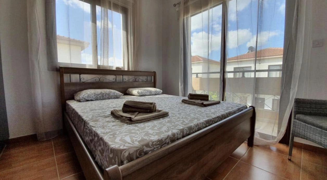 For rent 3 bedroom house with swimming pool in Kapparis. The house is fully furnished, equipped with household appliances and air conditioners. Sea view from the balcony. The location is within walking distance from one of the best beaches, cafes, restaurants and a supermarket.