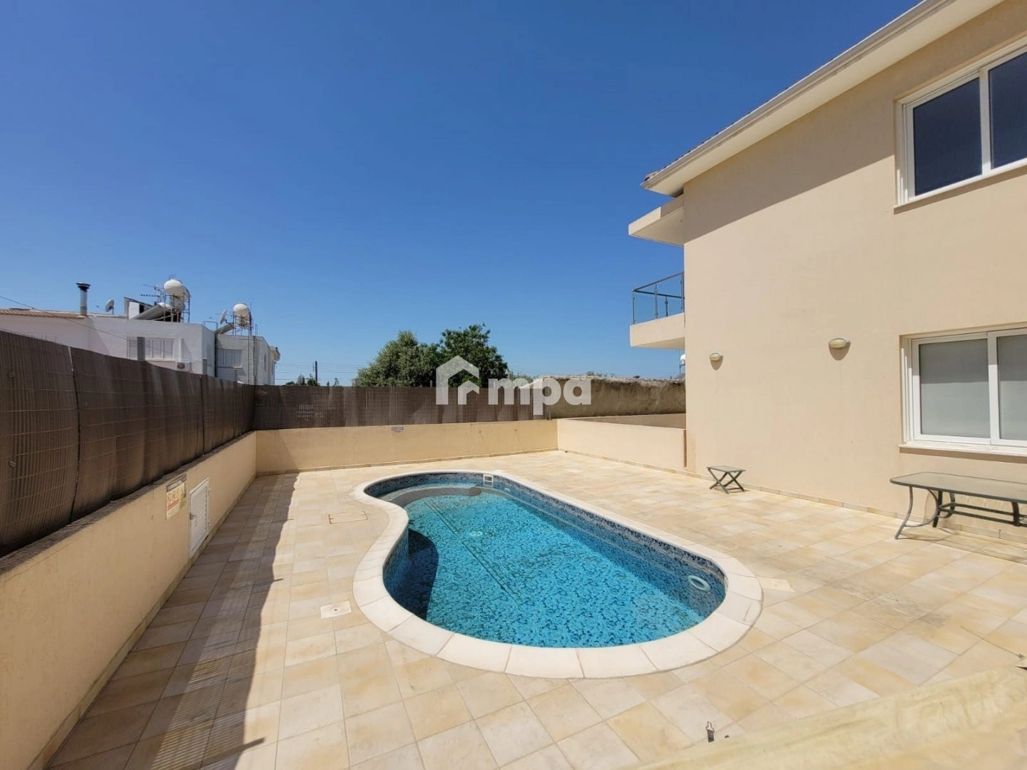 The apartment is part of a small complex of apartments sharing a communal pool.