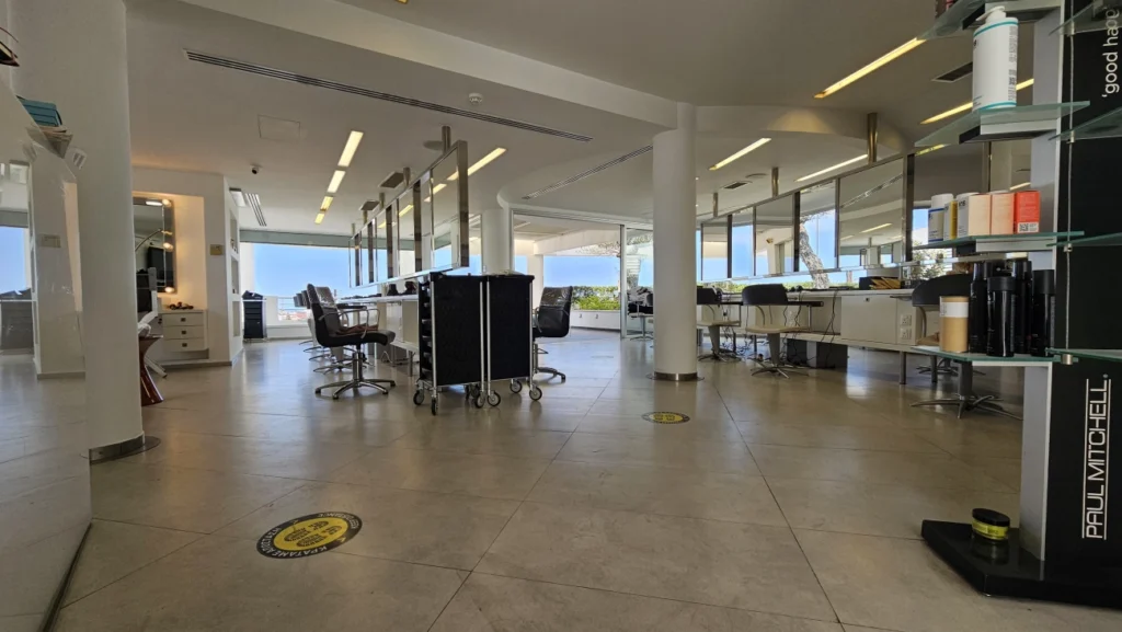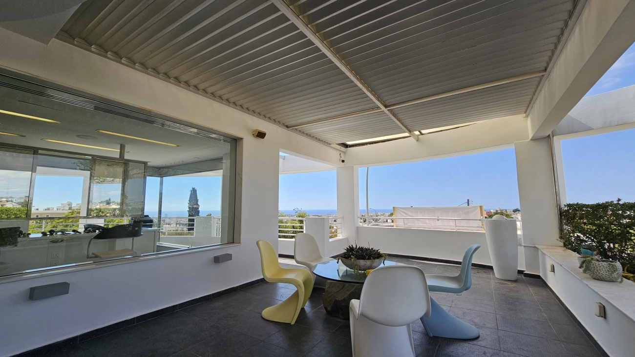 Office for rent in the area of Anovargos, Paphos. The 160 m2 room is located on the second floor and is an open-plan office. The covered area of 90 m2 has a balcony surrounding the second floor, offering beautiful views of the sea and Paphos. Fiber-optic Internet is provided. VRF system air conditioners are installed; alarm system and video surveillance. There is a kitchen; 2 private parking spaces are also provided.