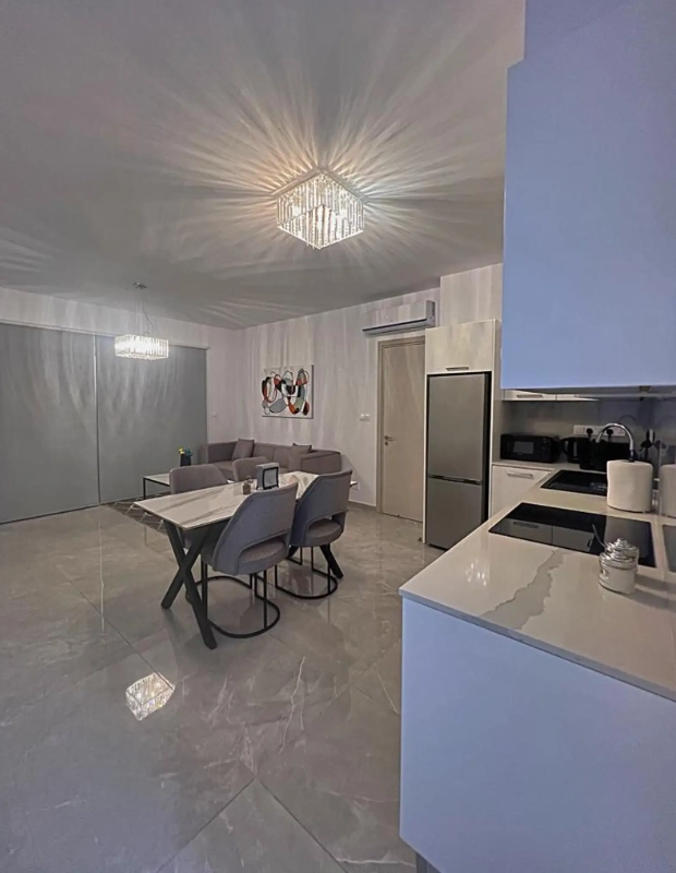 This elegant five-room apartment spans 350 m² and is located on the top (6th) floor. Featuring a stylish modern interior, spacious bedrooms, 3 bathrooms, a walk-in wardrobe, a cozy living room, and a fully equipped kitchen — it offers the perfect atmosphere for comfortable living and relaxation. Fully furnished and fitted with all essential appliances and air conditioning in every room.