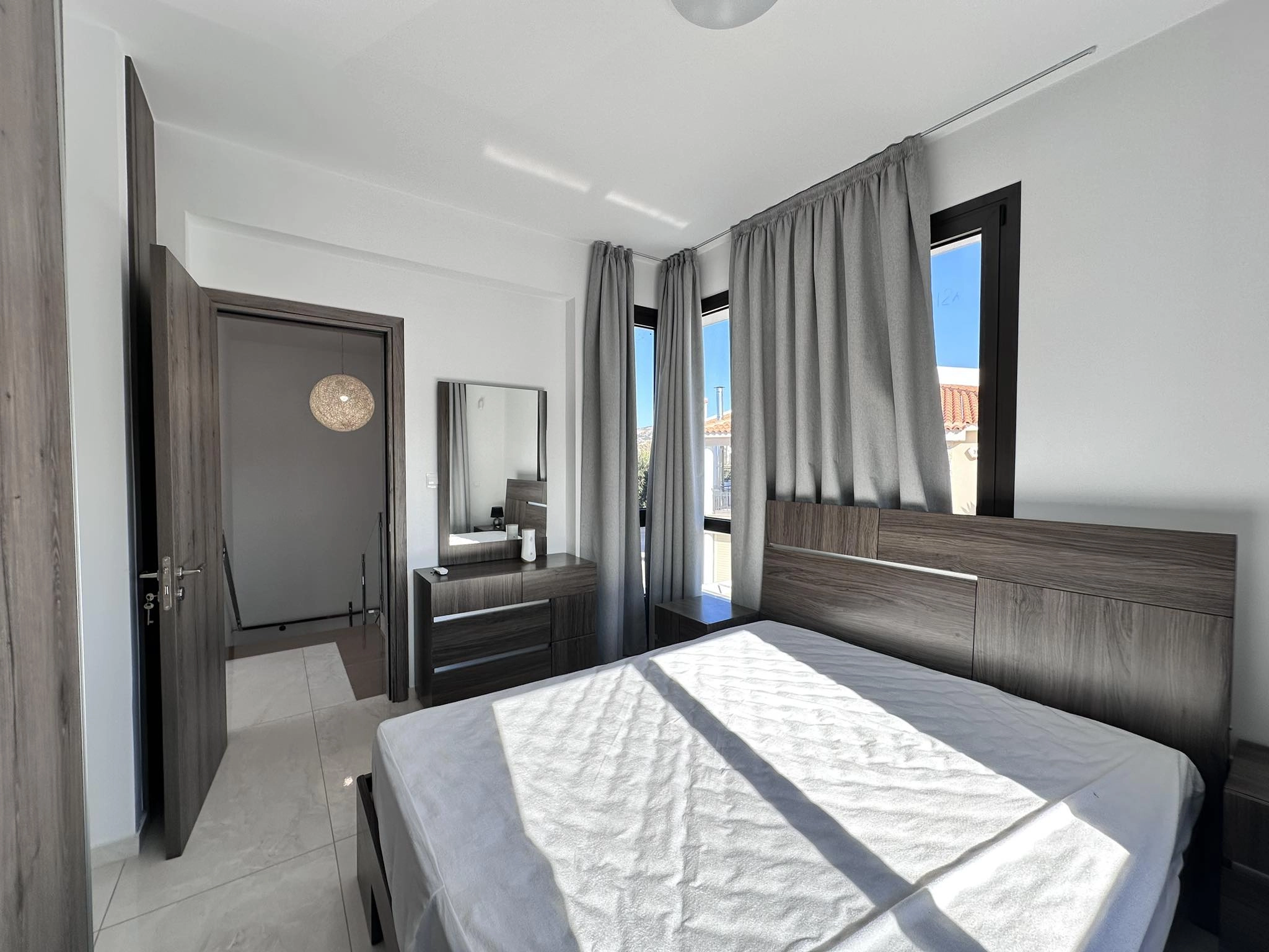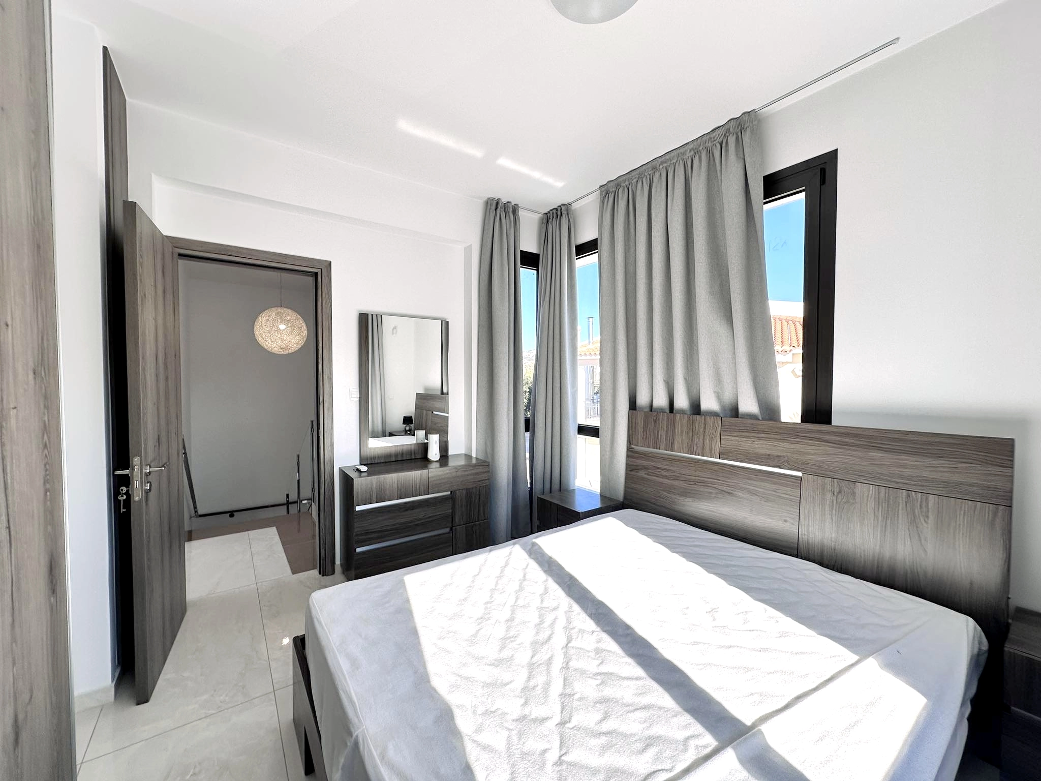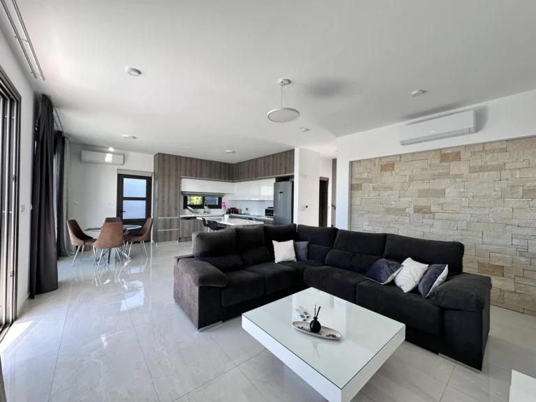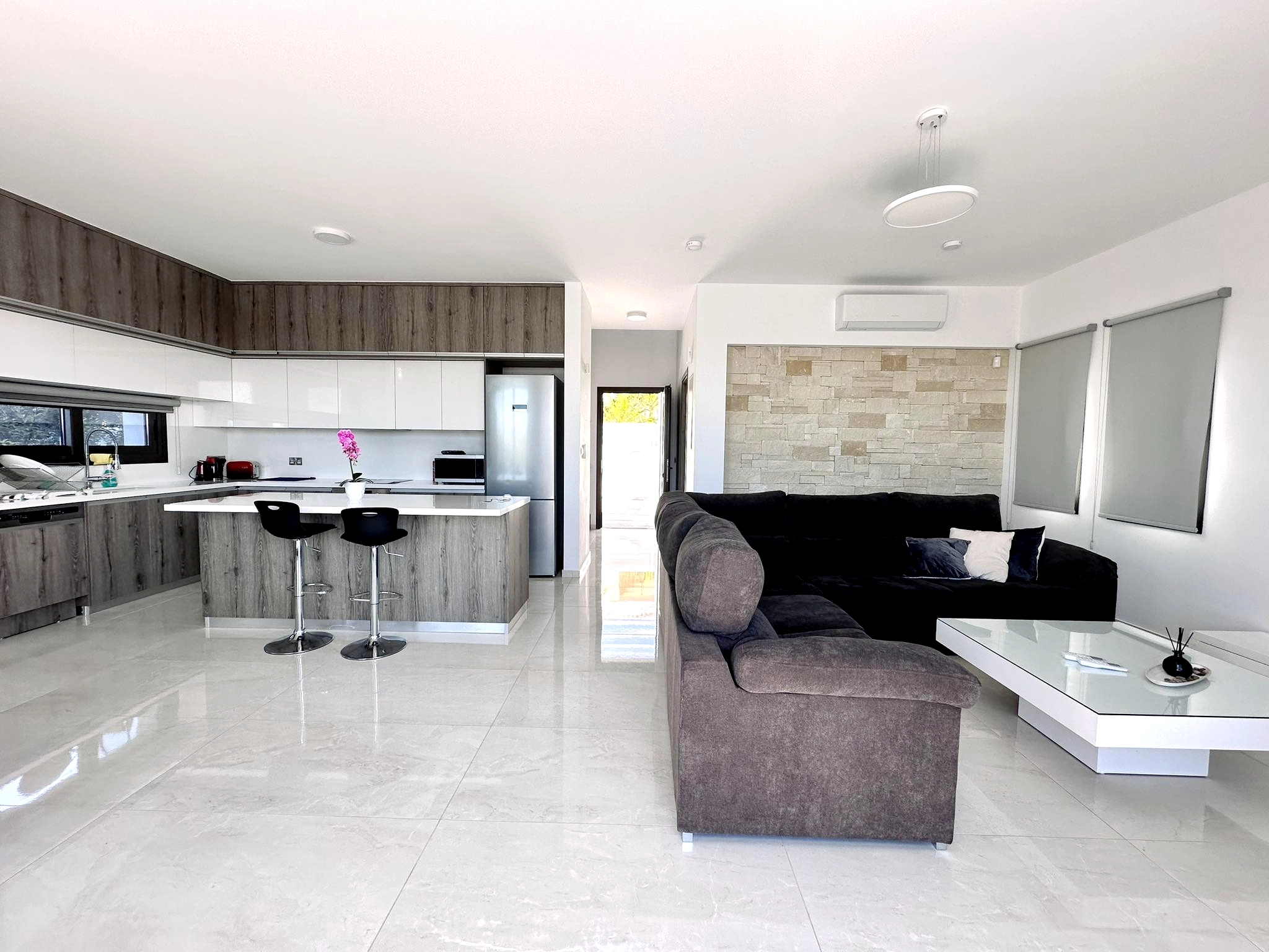 This contemporary villa is located in Emba, Paphos. Emba is a traditional Cypriot village and an ideal location for those seeking the peaceful village life, while still being close enough to everything one could possibly need. Within the village itself there are a handful of taverns and coffee shops, small mini markets and other amenities. There are also a number of churches and schools within the area. Emba is just a short drive away from a choice of beaches, larger supermarkets and Paphos harbour. Nestled within a pleasant village setting, this remarkable 3 bedroom villa, accompanied by an office space, unveils a harmonious fusion of modern design and breathtaking sea views. immaculately furnished to the highest standards, this residence is complete with everything required for a more than comfortable lifestyle. The ground floor unfolds with an inviting open plan layout, seamlessly integrating the living, dining, and fully equipped kitchen areas. Large patio doors create a natural transition between the interiors and the meticulously landscaped garden, where a private pool beckons. An additional highlight on the ground floor is the dedicated office space, providing a versatile area ideal for work or creative pursuits. Ascending to the upper floor, three thoughtfully designed bedrooms await, each promising a haven of comfort. The master bedroom indulges its occupants with an en-suite shower, offering a private retreat within the villa. A shared bathroom with a shower caters to the additional bedrooms. The upper level is crowned by a spacious veranda that offers sweeping sea views, providing an idyllic spot for relaxation and enjoyment. Step outside to the beautifully landscaped garden. Surrounded by carefully chosen flora, the swimming pool invites refreshing swims, while the paved areas create an ideal setting for al fresco dining and entertaining under the sun or stars. This villa strikes the perfect equilibrium between modern elegance, functional design, and the mesmerising backdrop of sea views. Viewing is highly recommended. Maintenace of Pool and Garden is incuded in the price!! Available 1st of June 2025! Terms of Payment: 2 Months Deposit + 1 Month Rent