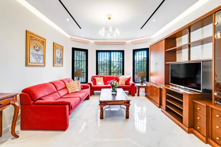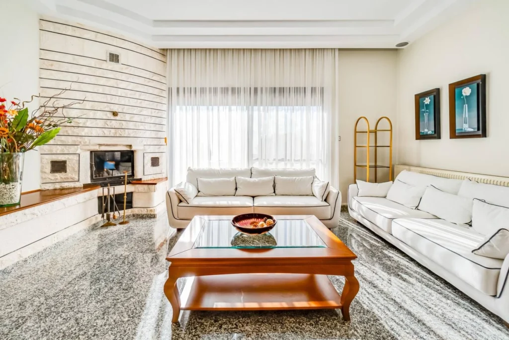 Luxury 5-bedroom villa for rent, located in Tala, Paphos. There are five bedrooms and 4 bathrooms, a large spacious living room and an office, and air conditioning in each room. The villa was completely renovated in 2025, with new furniture and appliances. There is central heating. The villa is located on a stunning plot with a private outdoor pool, beautifully decorated garden, barbecue area and outdoor dining area. The covered parking can accommodate up to four cars. The windows offer views of the sea and mountains. Villa Adolina is conveniently located just a three-minute drive from various restaurants and within walking distance from Tala Municipal Park. It offers the perfect combination of tranquility and accessibility for an unforgettable vacation.