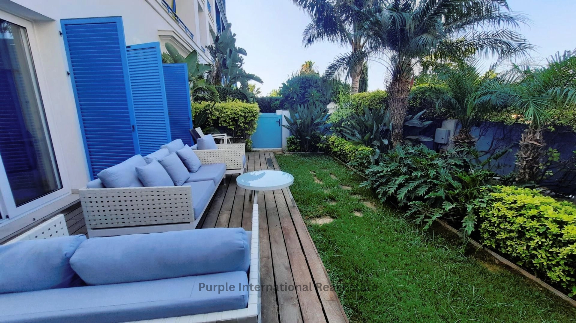 Large windows fill the living area with natural light and provide a stunning view of the sea. Enjoy warm summer days in the communal swimming pool or unwind in your private Jacuzzi. The central AC system keeps the home cool throughout the year.