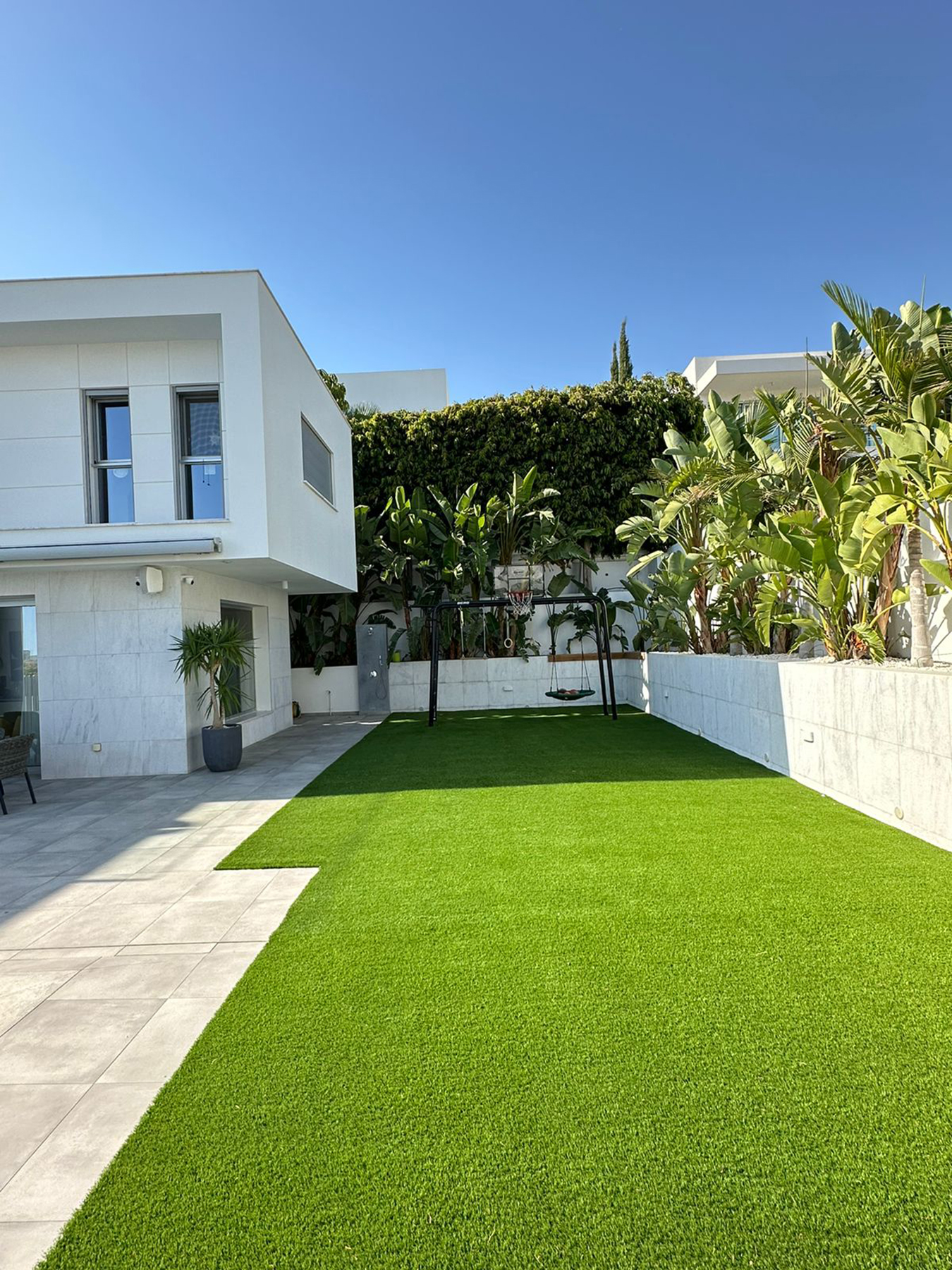 The villa comes fully furnished and equipped with high-quality kitchen appliances and multiple TVs. Comfort is ensured year-round with underfloor heating, VRV air conditioning, and additional units. A water softener system, alarm and camera security, and a dedicated children’s outdoor play area add to the functionality and peace of mind.