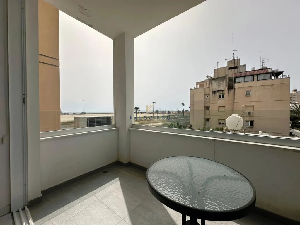 Apartment for rent in Port area, Larnaca. The property is furnished, has internal covered area of 80 sq. m and consists of a living room, kitchen, two bedrooms, one shower with wc. It also has also a 7 sq. m covered balcony. The apartment has a covered parking spot on the ground floor.