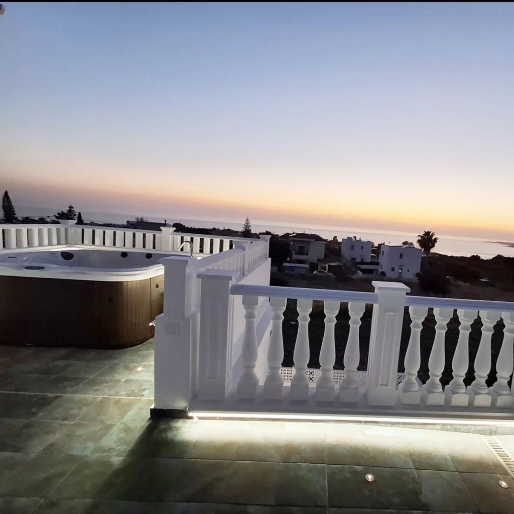 Built in 2025 with energy efficiency A+, this home boasts underfloor heating for warmth during the cooler months. Large windows open up to a panoramic view, including stunning sea vistas, while the southwest-facing orientation ensures plenty of natural light throughout the day. Step outside to enjoy your private swimming pool and jacuzzi on the rooftop, so that you can embrace indoor-outdoor living at its best.