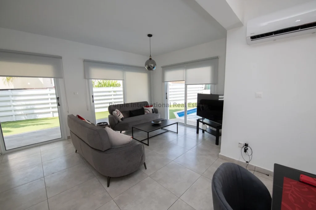 The villa comes fully furnished with contemporary decor. Enjoy an open-plan living and dining area that connects seamlessly to the kitchen, all equipped for your daily needs. Step outside to your private swimming pool, a wonderful space to relax or entertain guests in the sunshine.