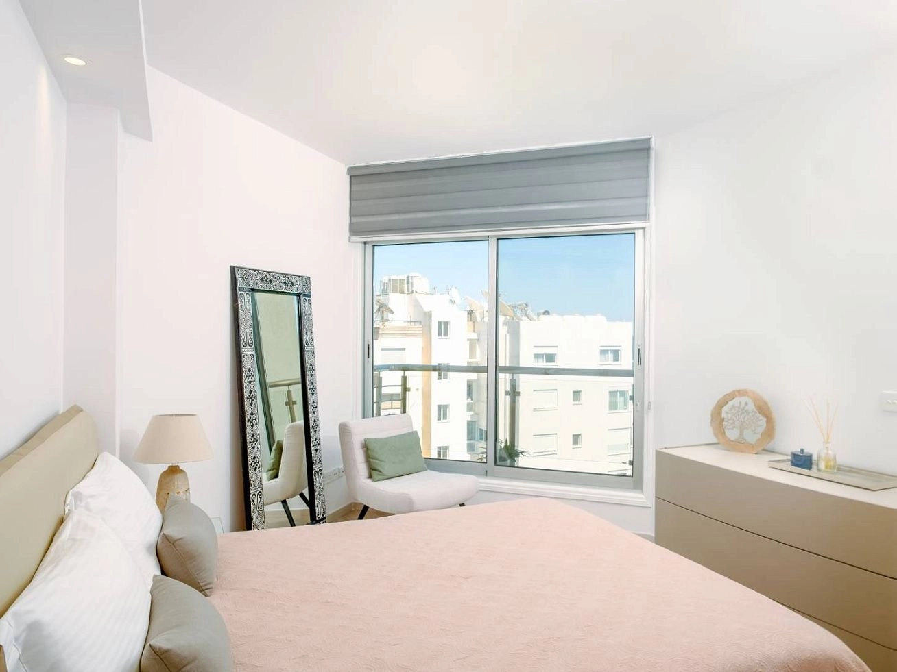 The apartment has high-quality branded furniture and household appliances (Miele: refrigerator, freezer, dishwasher, washing machine). The apartment has 1 bedroom, 1 bathroom, living area, balcony with sea view.