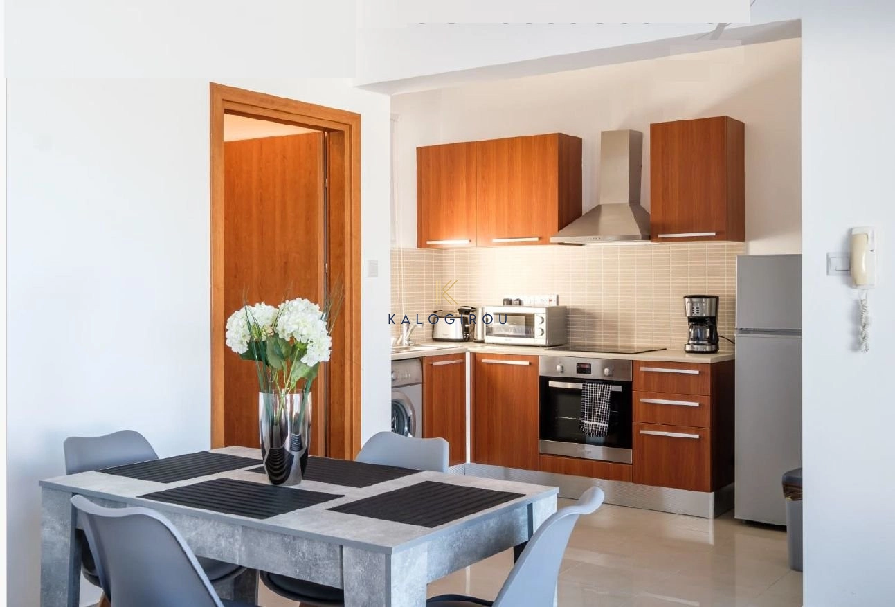 Apartment for rent in Tersefanou area. It consists of an open plan kitchen, living room, dining area, 2 bedrooms, a main bathroom, 1 en suite shower, covered & uncovered veranda. The residents have also access to a covered parking and to the complex’s communal swimming pool.