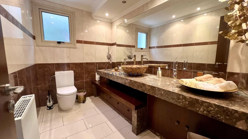 Luxury Villa for Rent in Dekeleia area, Larnaca. The property features six spacious bedrooms, one on the ground floor and five on the first floor. All bedrooms come with en-suite showers and WC, while several of them also feature walk-in closets. On the ground level, you’ll also find a guest WC, a large open-plan living room with a fireplace, a dining area, a fully-equipped kitchen, an additional smaller living room, and a storage room. The villa comes fully furnished and equipped with all necessary electrical appliances, making it move-in ready.