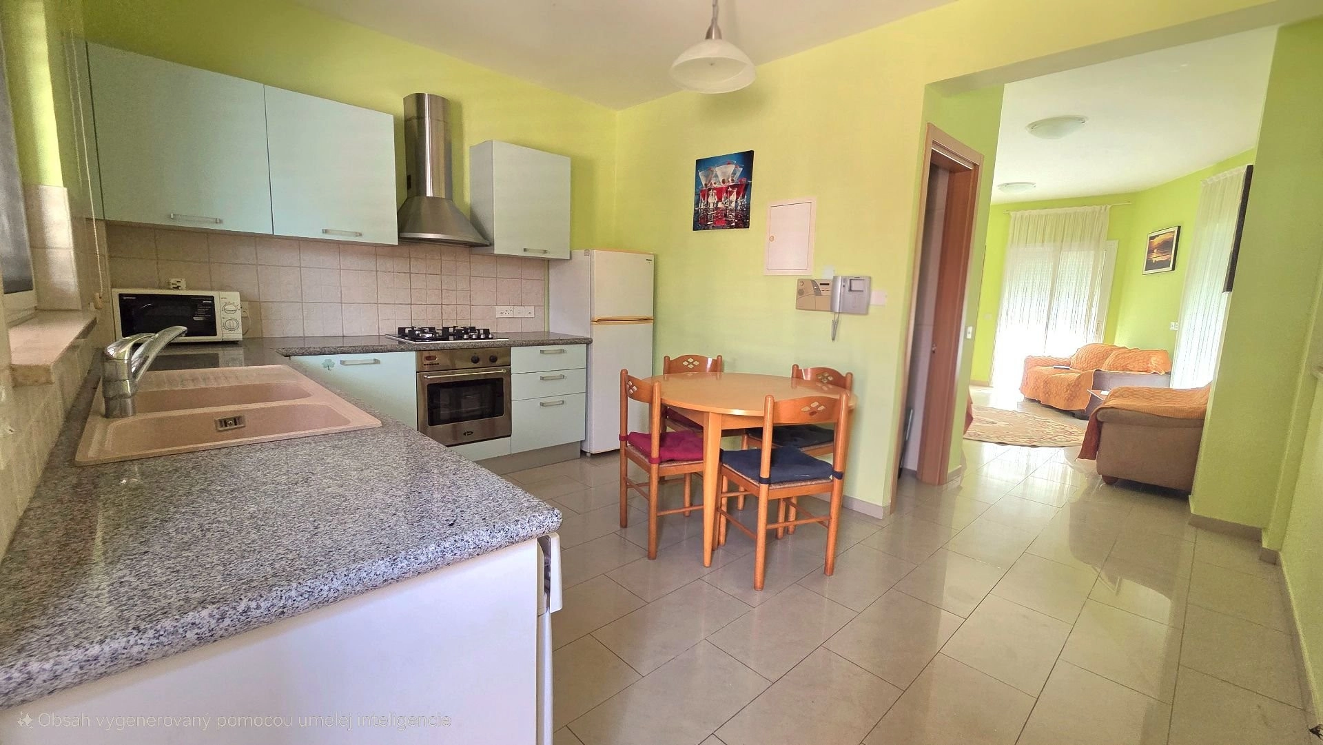 The house was built in 1995 and has been carefully maintained, preserving its inviting atmosphere. The living space is bright, open, and designed for easy everyday living. The kitchen is fully equipped, and the living room opens up to a cozy dining area.