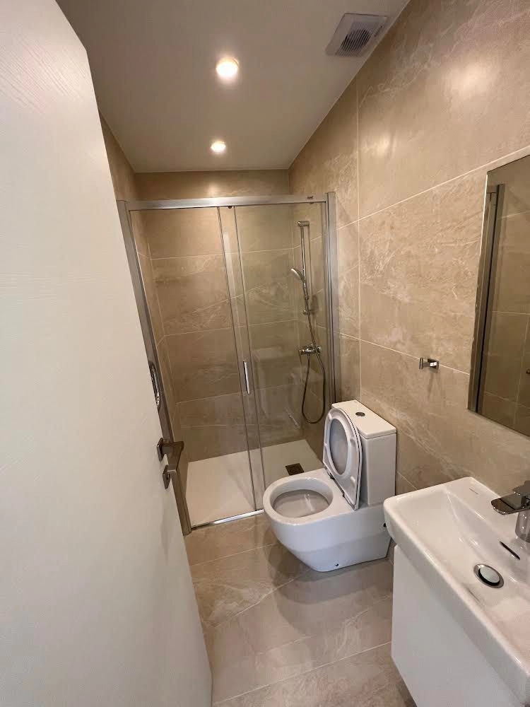 Both bedrooms are generously sized, with ample wardrobe space. The master bedroom includes an en suite bathroom, while the second modern bathroom serves guests or family. One of the standout features is the underfloor heating throughout the apartment, offering year-round comfort.