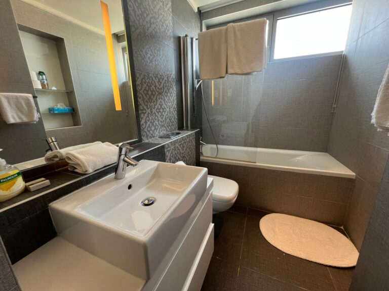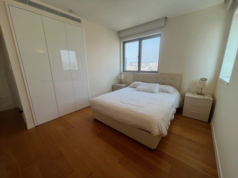 For rent luxury 2 b/r apartment with side sea view located in a private gated complex in Neapolis, opposite the beach and within walking distance to all kind of amenities. The total covered area is 128 sq.m (internal area 90 sq. m) and it consists of an open-plan kitchen connected with dining and living areas, 2 bedrooms (master bedroom en-suite with bathroom), family shower and a spacious covered veranda with sea and city views. The apartment is fully furnished and equipped with Miele appliances. Also it has a central VRV air conditioning system, solar panels for hot water, underfloor heating, double glazed windows, water pressure system, security entrance door, parquet floor in bedrooms, covered parking and storage room. The complex has a common swimming pool, jacuzzi, sauna, garden, playground, room service, gym, tennis court, reception, SPA saloon and 24-hour security system.