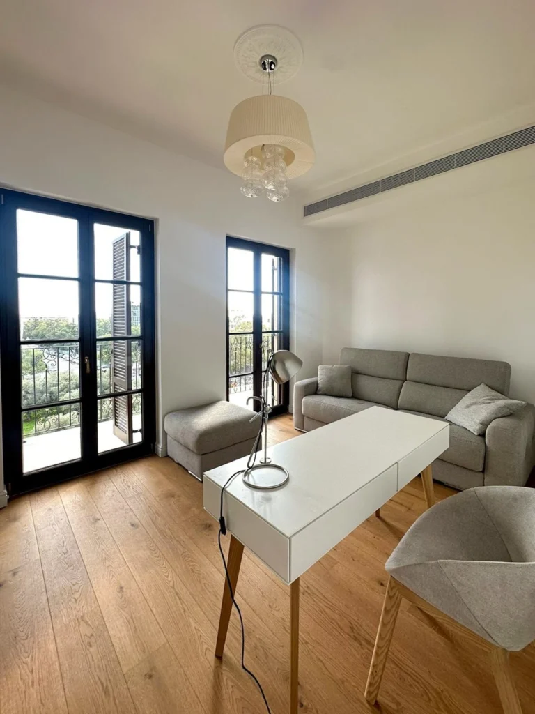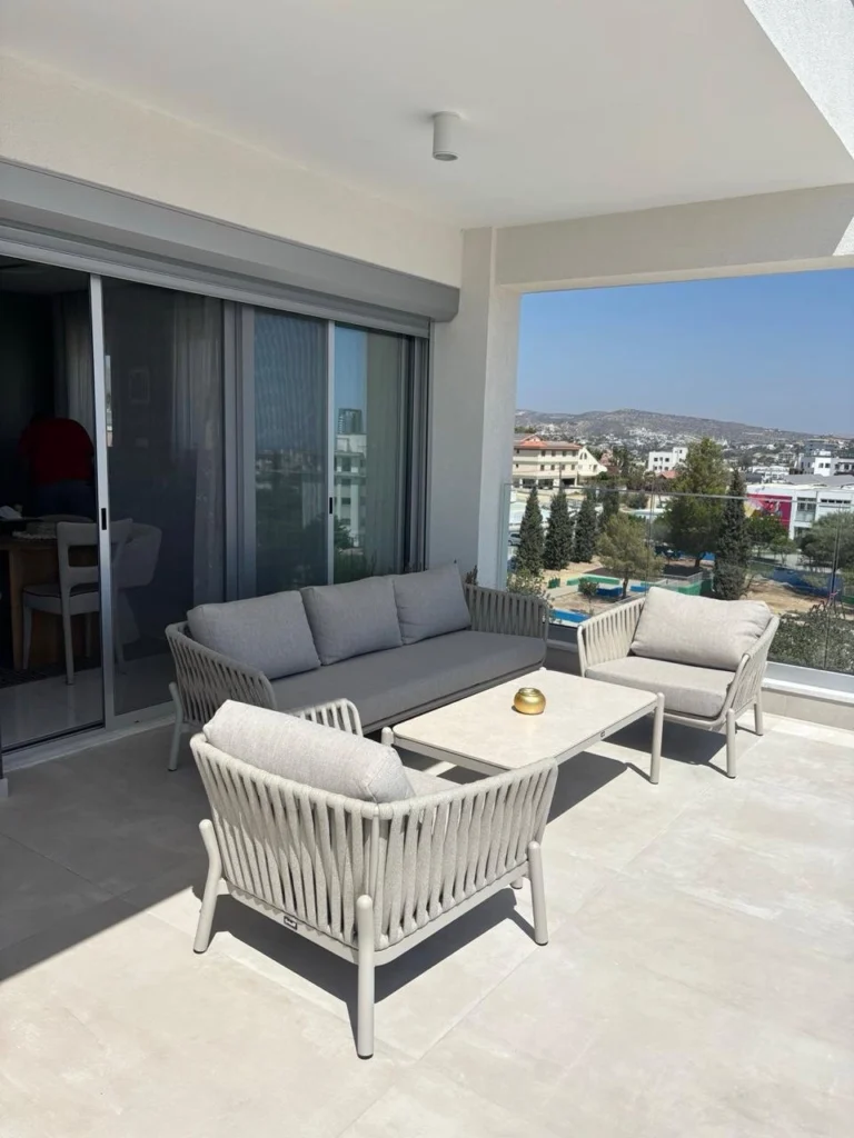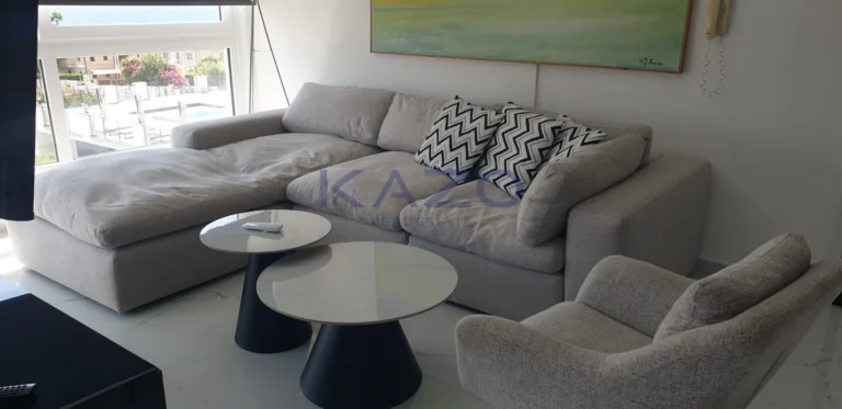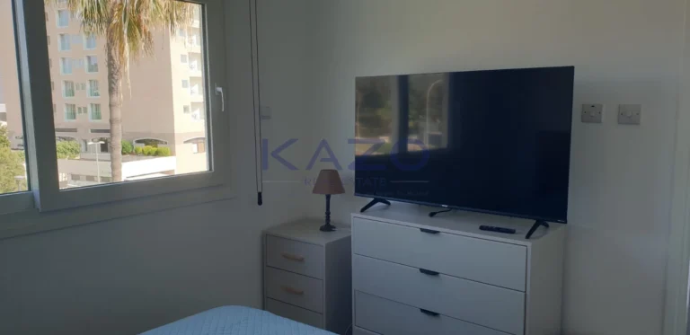 For rent 2 b/r apartment with a sea view located in a private gated complex opposite St. Raphael hotel in Pyrgos area, walking distance to the beach and all kind of amenities. It consists of open-plan kitchen connected with a dining and living area, two bedrooms, family bathroom and covered veranda with a sea view. The apartment is semi-furnished and equipped, with air-condition, double glazed windows with mosquito nets and shutters, solar panels for hot water, laminate floor, water pressure system and uncovered parking. The complex has common swimming pool, tennis court, garden, guest parking and electric gates with remote control.