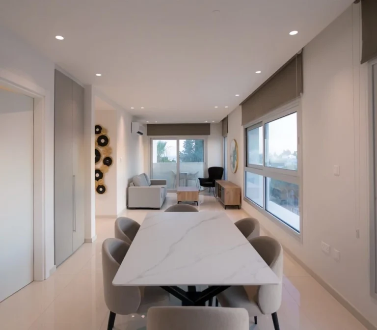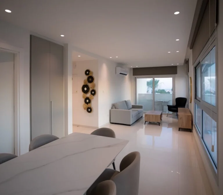 This key-ready apartment offers a comfortable internal space of 115 m2, featuring three well-sized bedrooms and two modern bathrooms. Located in the sought-after area of Agios Tychonas, this home combines modern living with a peaceful environment. Built in 2016, the apartment is fully furnished with stylish, contemporary pieces and benefits from underfloor heating for your comfort.