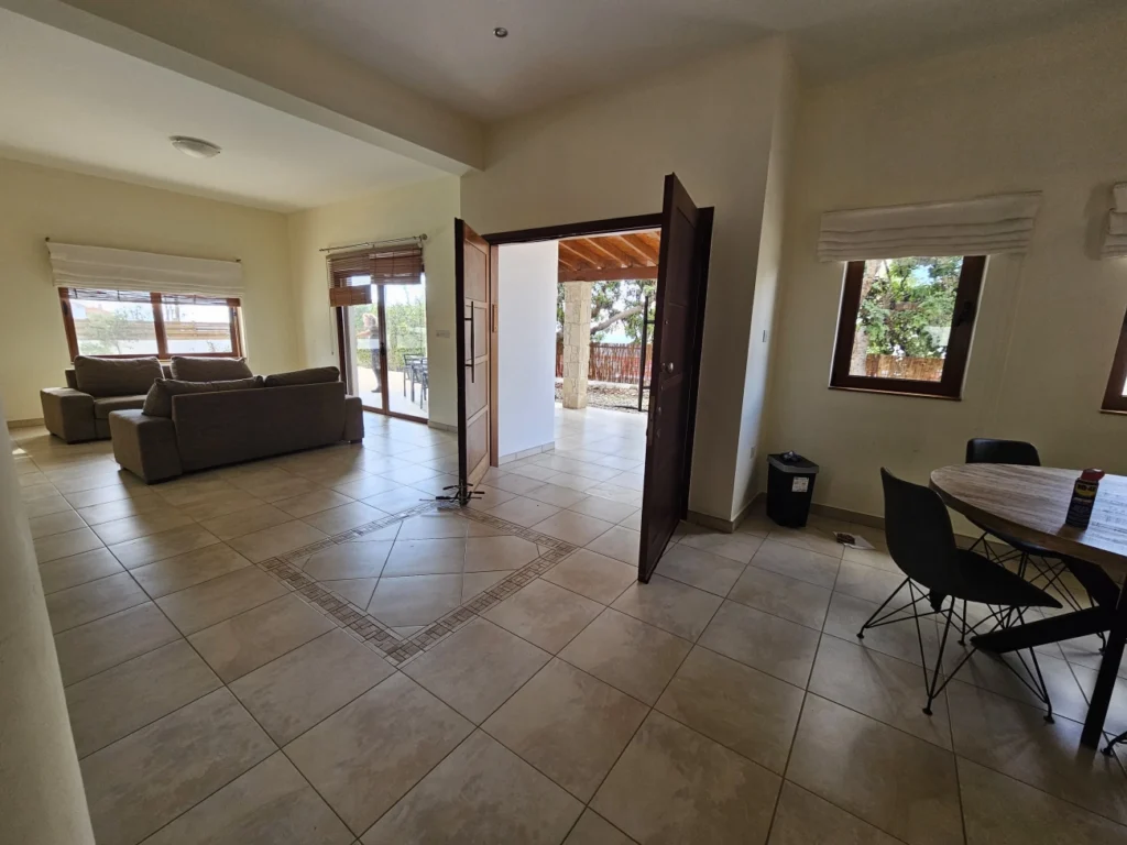 A 4-bedroom villa is available for rent in Konia, Paphos. The villa has a living area of 200 m² and sits on a 450 m² plot. This spacious two-story villa is located in a picturesque area and is in excellent condition. It features 4 bedrooms, 3 bathrooms, a large covered veranda, private pool, and garden. There is covered parking, underfloor heating with a new heat pump, full air conditioning in all rooms, and electrical appliances. The villa is partially furnished and equipped with a photovoltaic system, providing annual savings on electricity.The property has an Energy Efficiency rating of A and was built in 2007.
